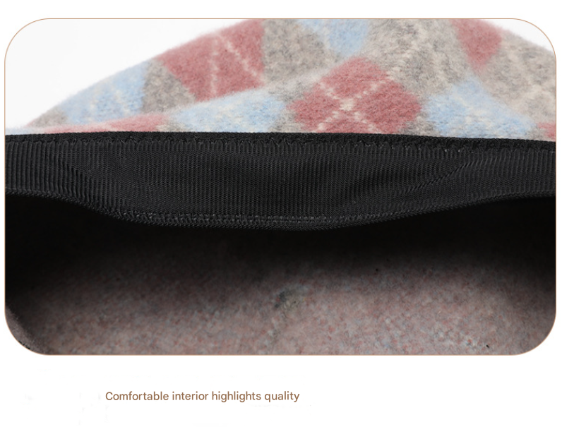 This wool argyle beret combines classic design with contemporary color-blocking, crafted from soft, warm wool to keep you comfortable during cooler seasons. Its vintage-inspired argyle pattern adds a touch of playful sophistication, making it a versatile accessory for autumn and winter outfits.