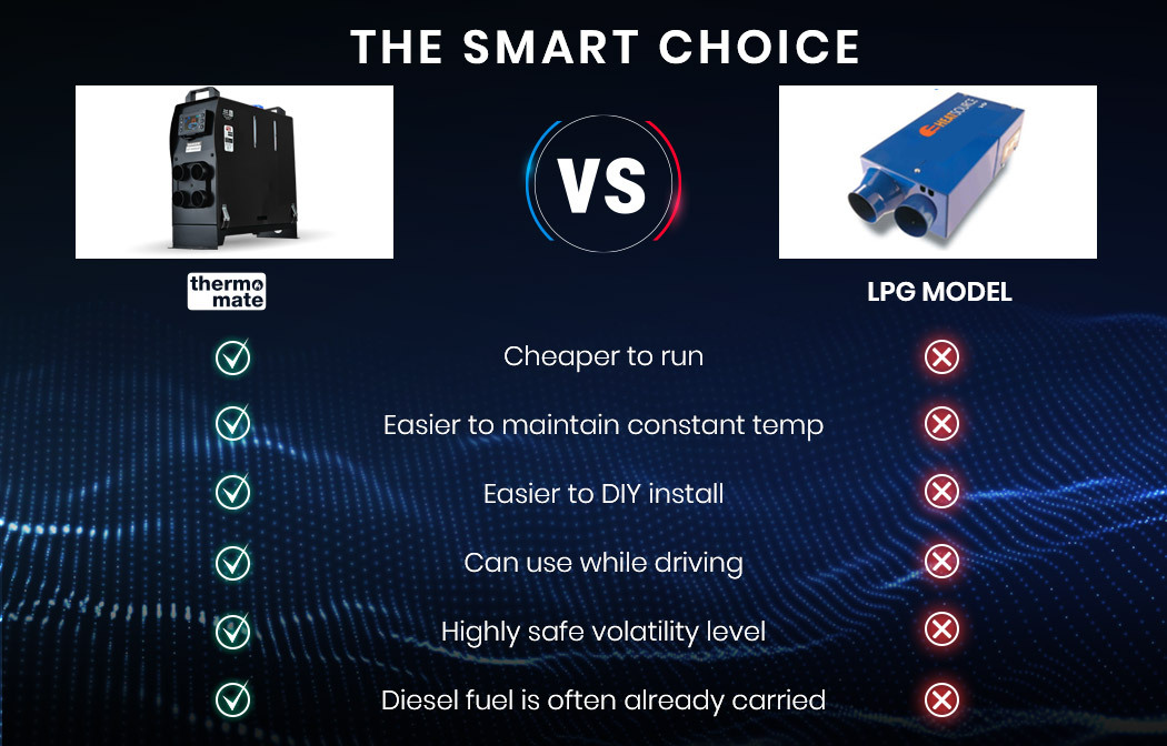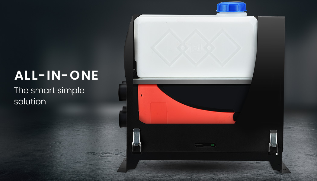 - All-in-one design with integrated fuel tank and heater