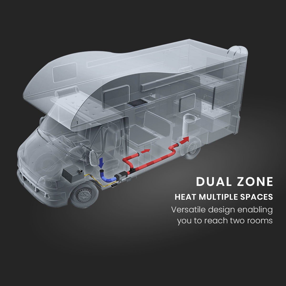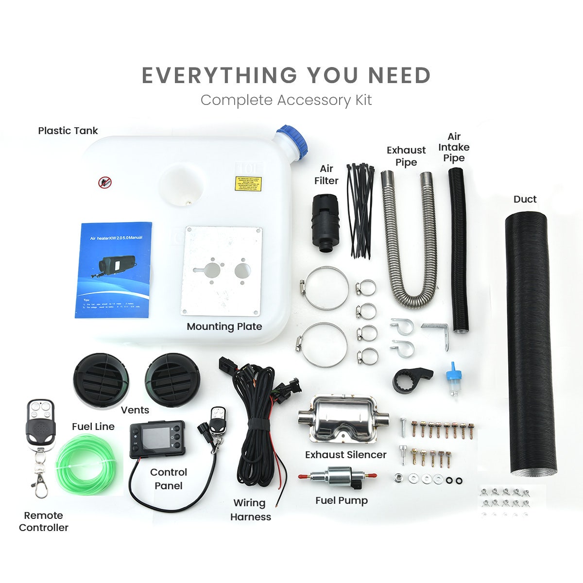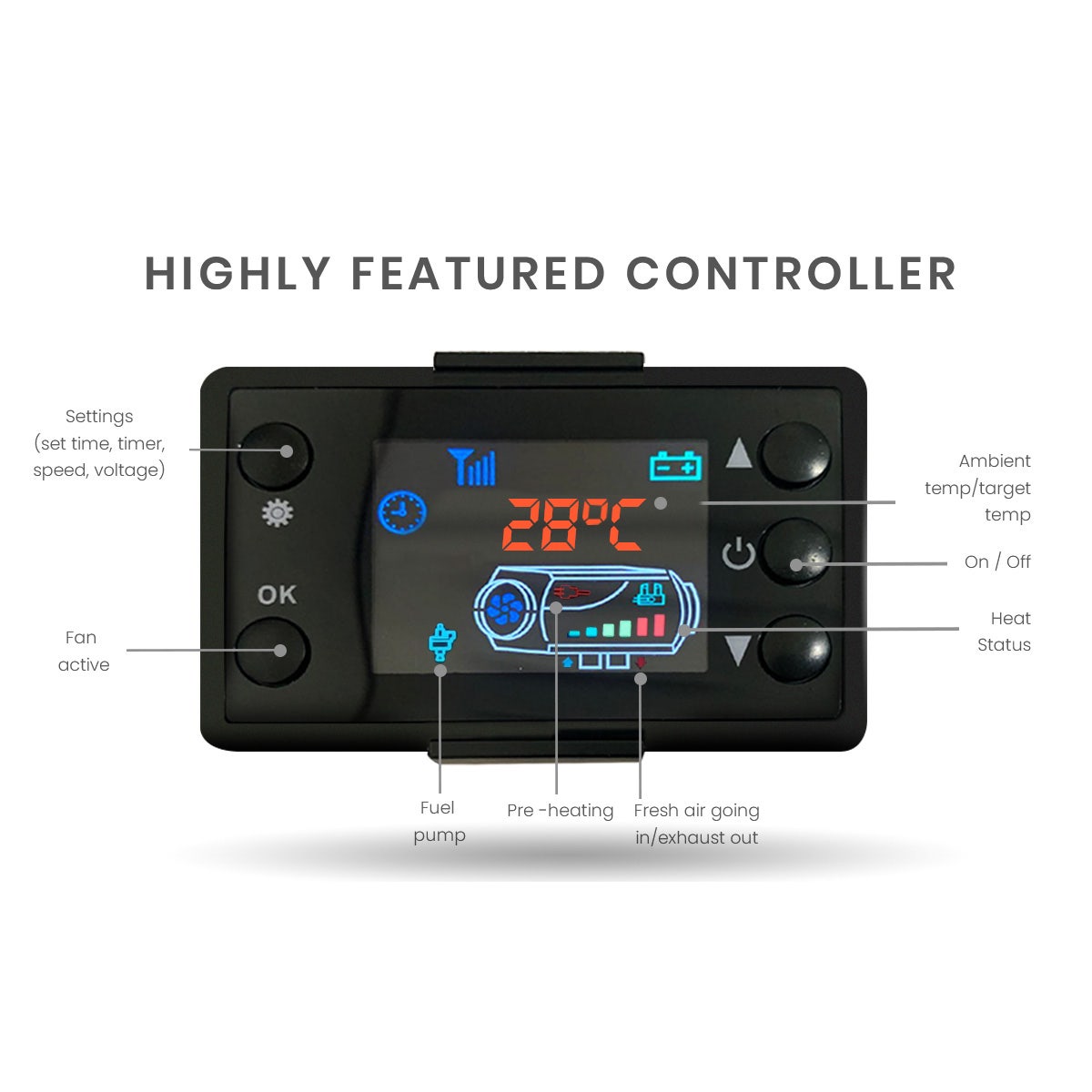 This diesel heater provides an efficient and user-friendly heating solution suitable for vehicles, boats, or workshops. It offers automatic temperature control, easy operation via LCD control panel or remote, and quiet performance, making it ideal for maintaining a warm and comfortable environment during travel or work.