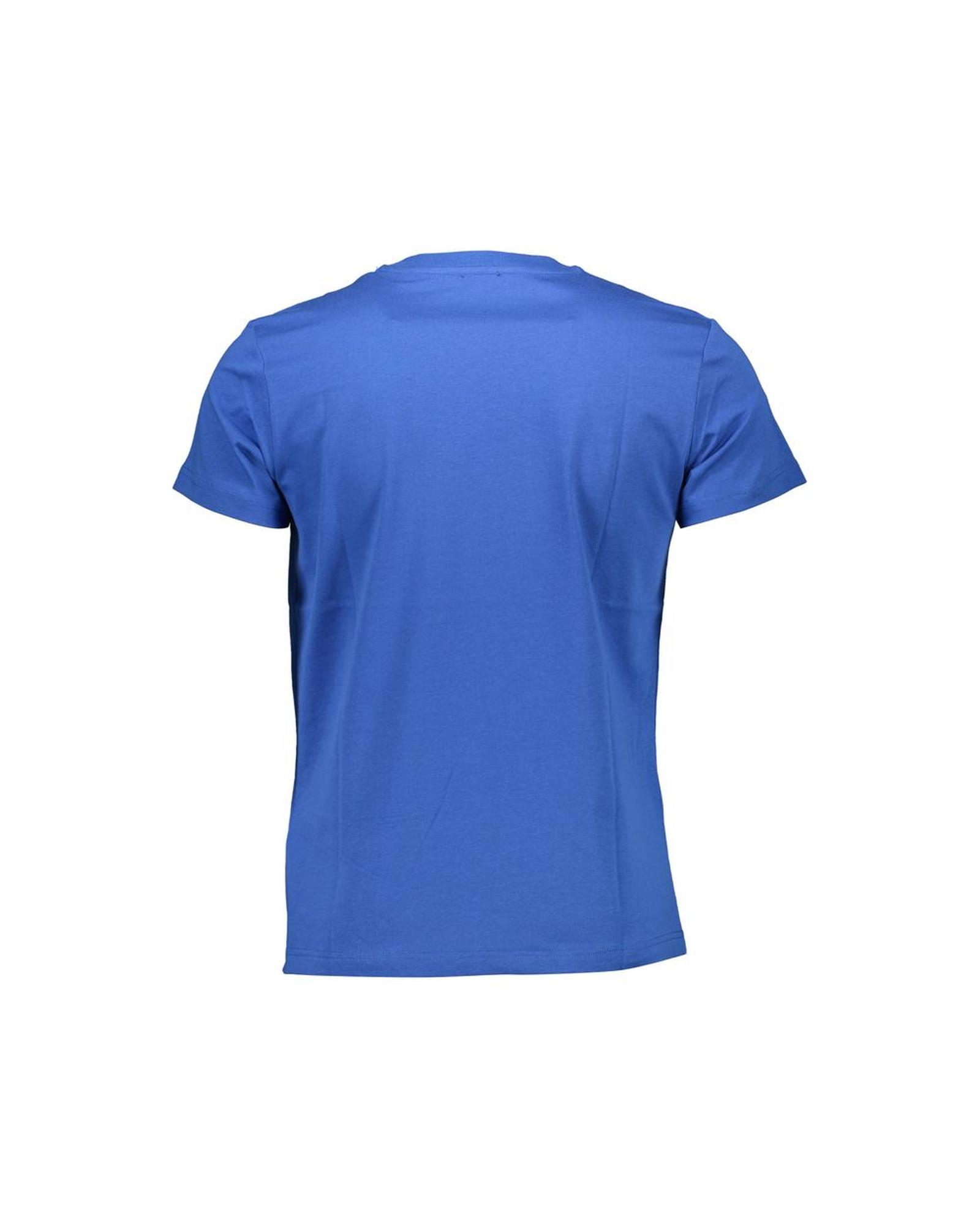 This men’s blue cotton crew neck t-shirt features a bold graphic logo on the chest, making it a stylish choice for casual wear. Crafted from soft and breathable cotton, it offers comfort and ease of movement for everyday activities.