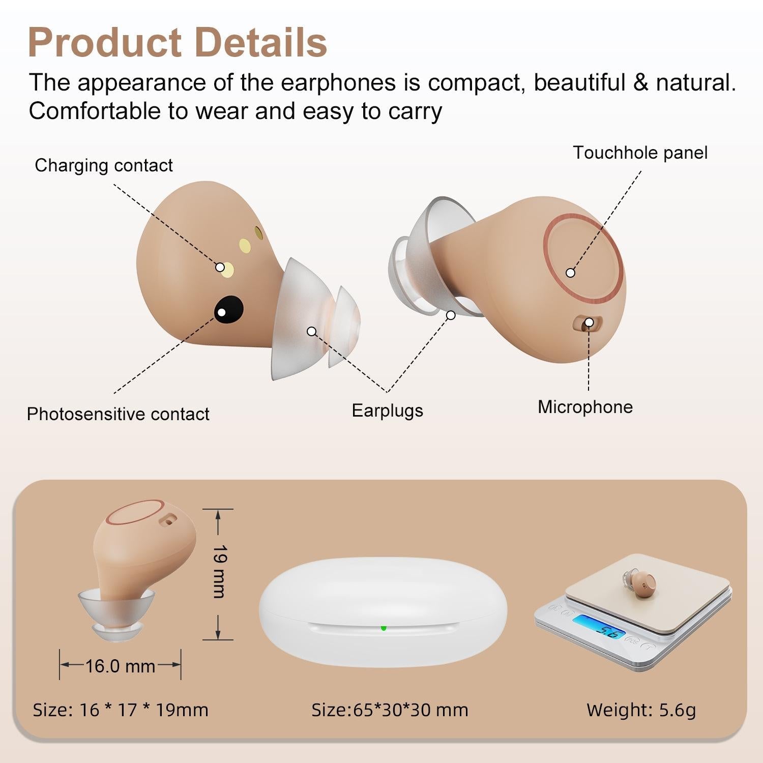 Digital In Ear Tws Hearing Aid Rechargeable & Invisible – Skin Colour