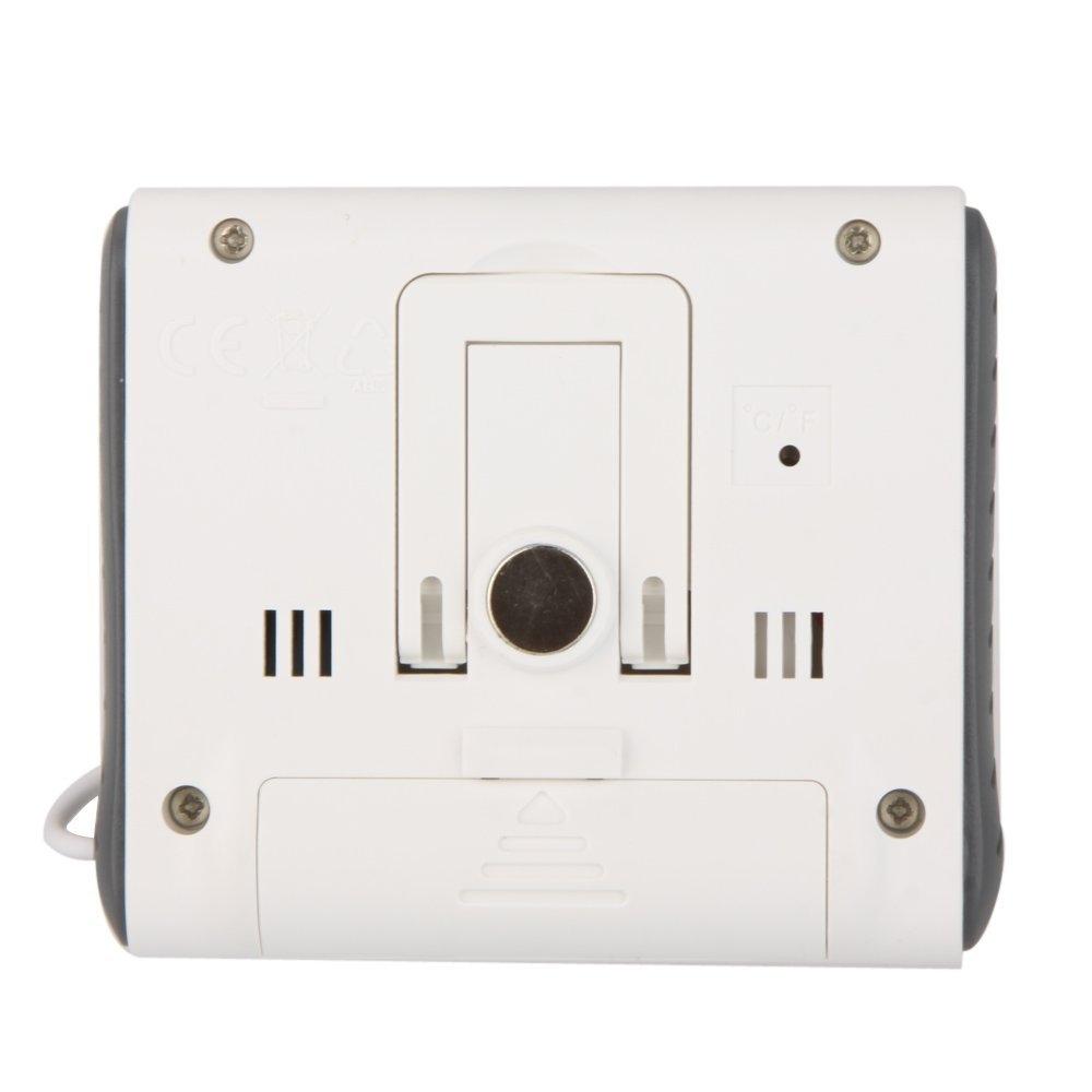 This digital thermometer hygrometer features an external sensor for accurate indoor and outdoor temperature and humidity readings. It offers easy switching between Celsius and Fahrenheit, a frost point alarm, and a comfortable display range. Its compact size makes it suitable for various environments.