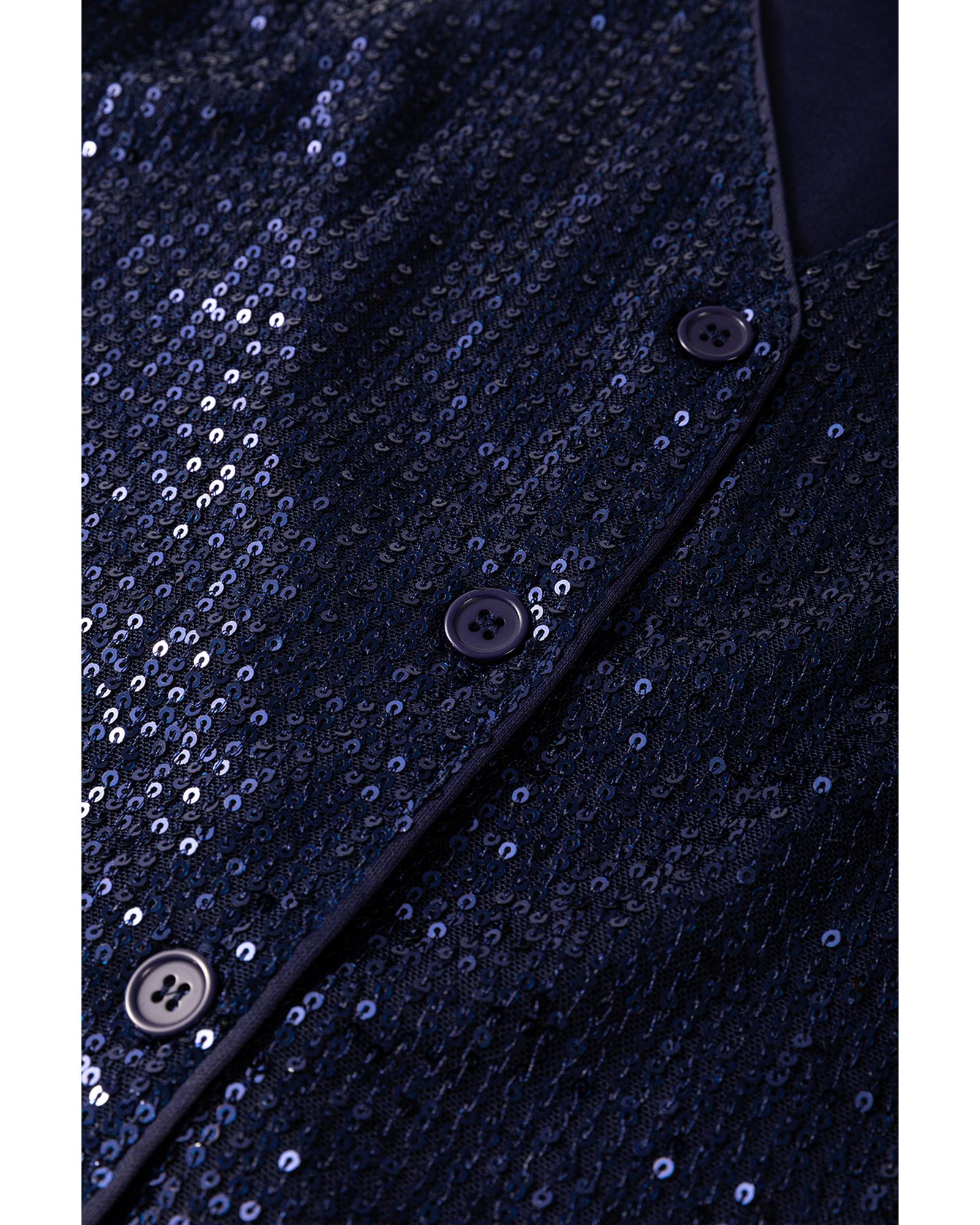 This stylish tank top features a deep V neckline and dazzling sequins that catch the light, creating a confident and alluring look. The sleeveless design showcases your arms, while the button front detail adds a touch of refinement. It offers a perfect balance between chic and casual, making it suitable for various occasions.