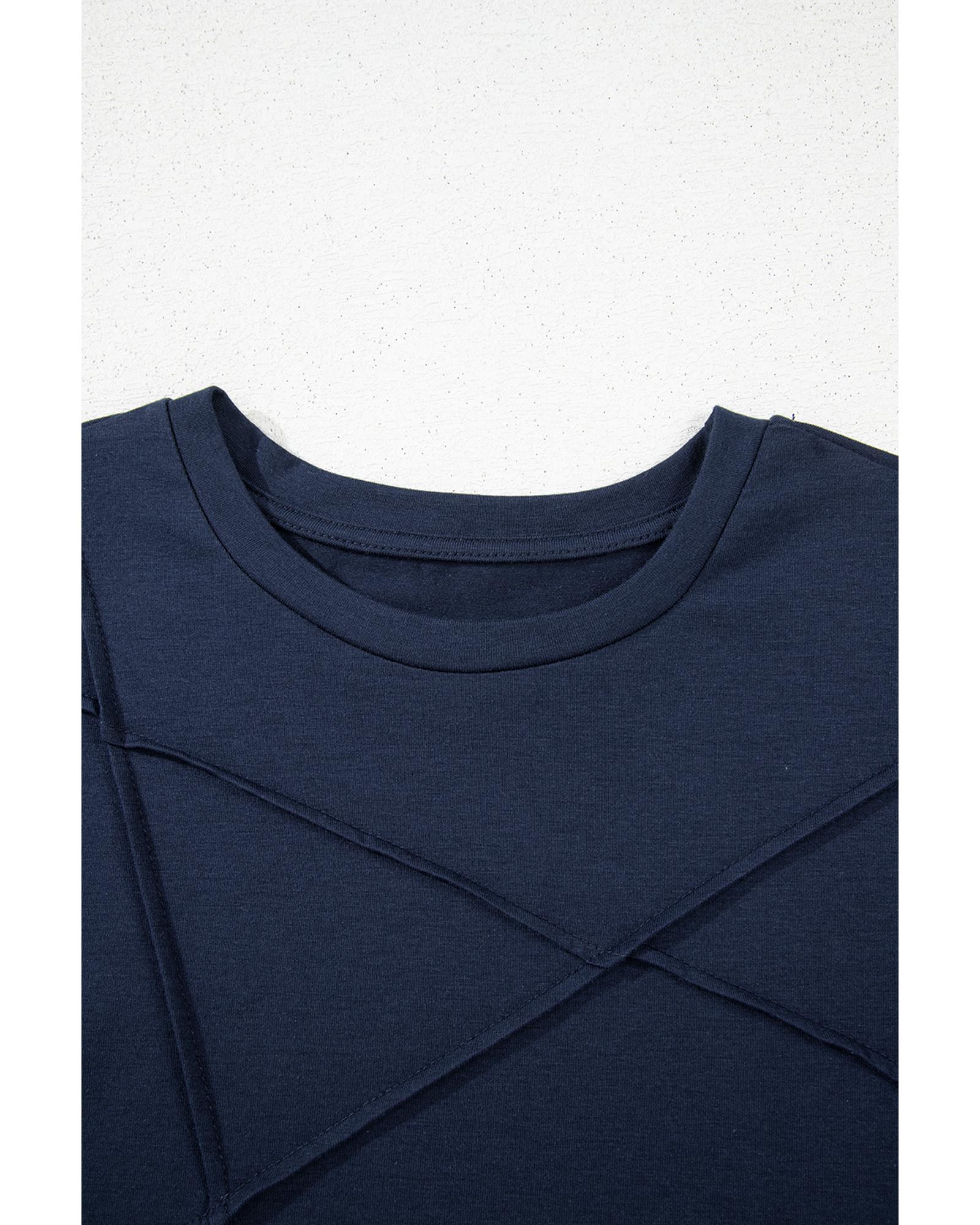 Dirty blue Solid Color Toothpick Stripe Round Neck T Shirt – S