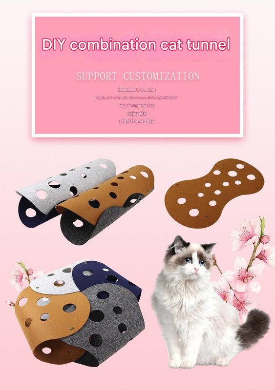 The DIY Felt Cat Tunnel is a versatile and engaging pet toy designed to keep your cat entertained. Crafted from durable felt, it features an egg roll shape with multiple holes, encouraging exploration, play, and hiding. Its customizable design allows for various assembly options, providing a fresh experience for your pet each time.