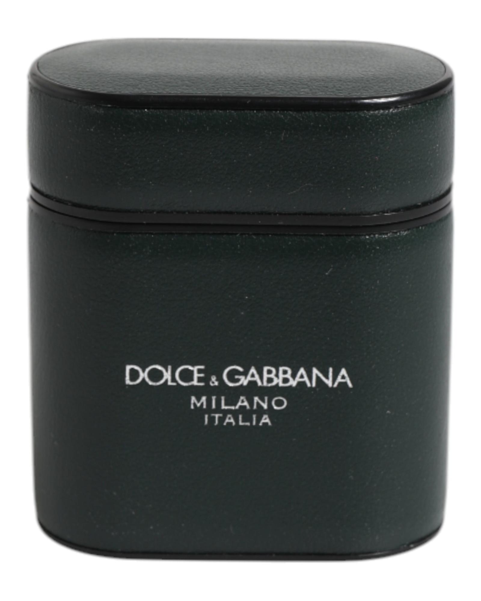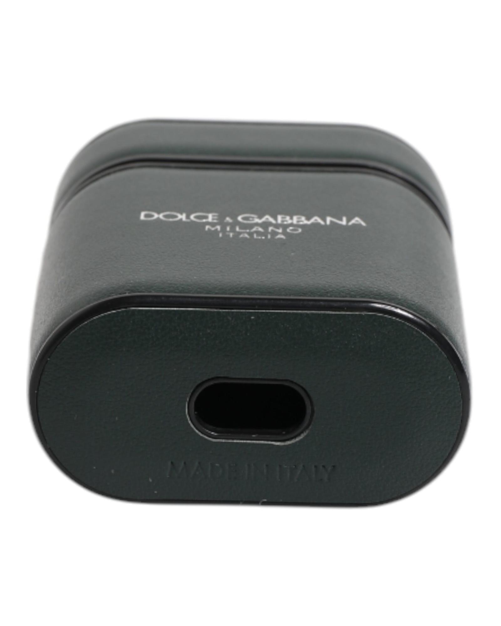 Dolce & Gabbana Men’s Black Calfskin Leather Logo Print Flip Holder Airpods Case – One Size