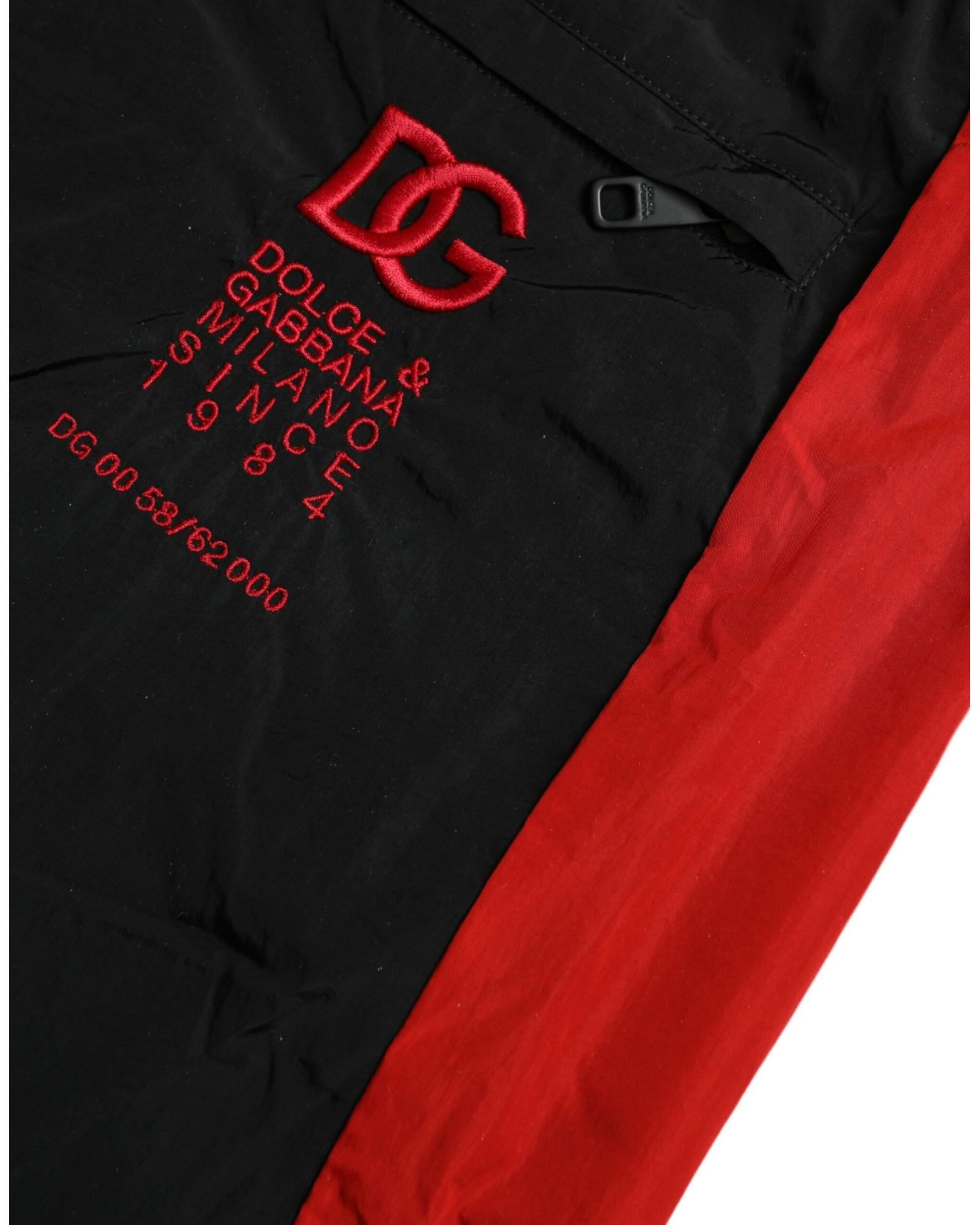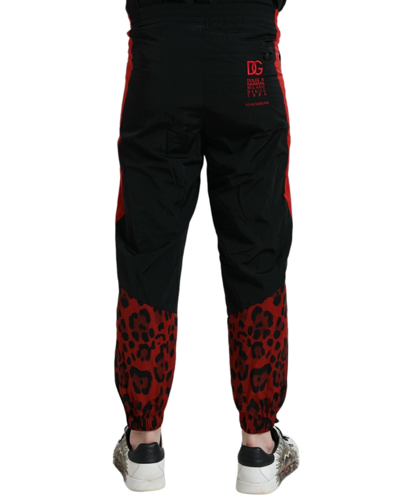 Dolce & Gabbana Men’s Black Red Leopard Print Nylon Jogger Pants – 50 IT