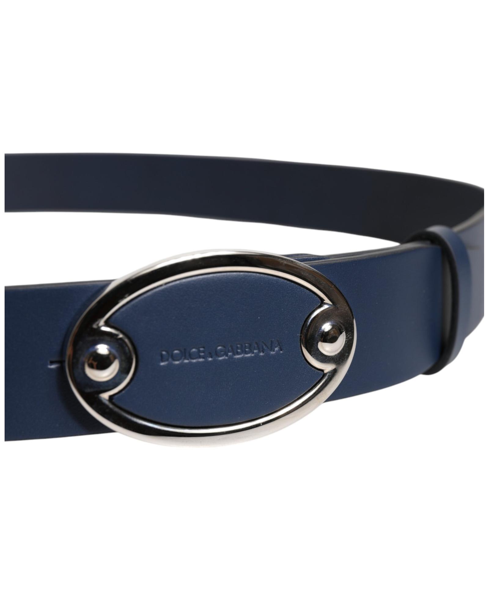 Dolce & Gabbana Men’s Blue Leather Classic Metal Logo Buckle Belt – 110 cm