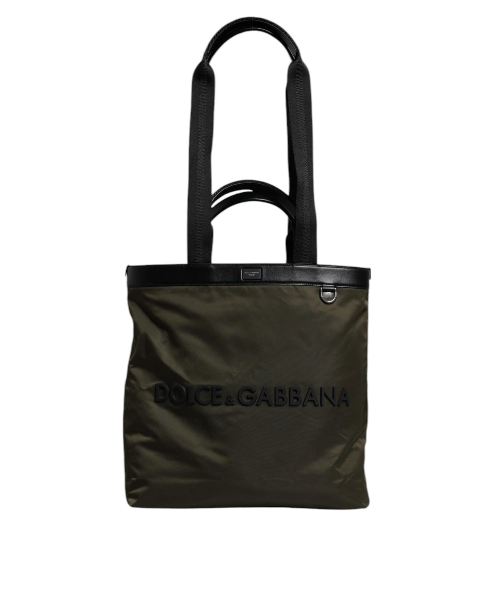 Dolce & Gabbana Men’s Military Green Nylon Shoulder Strap Tote Bag – One Size