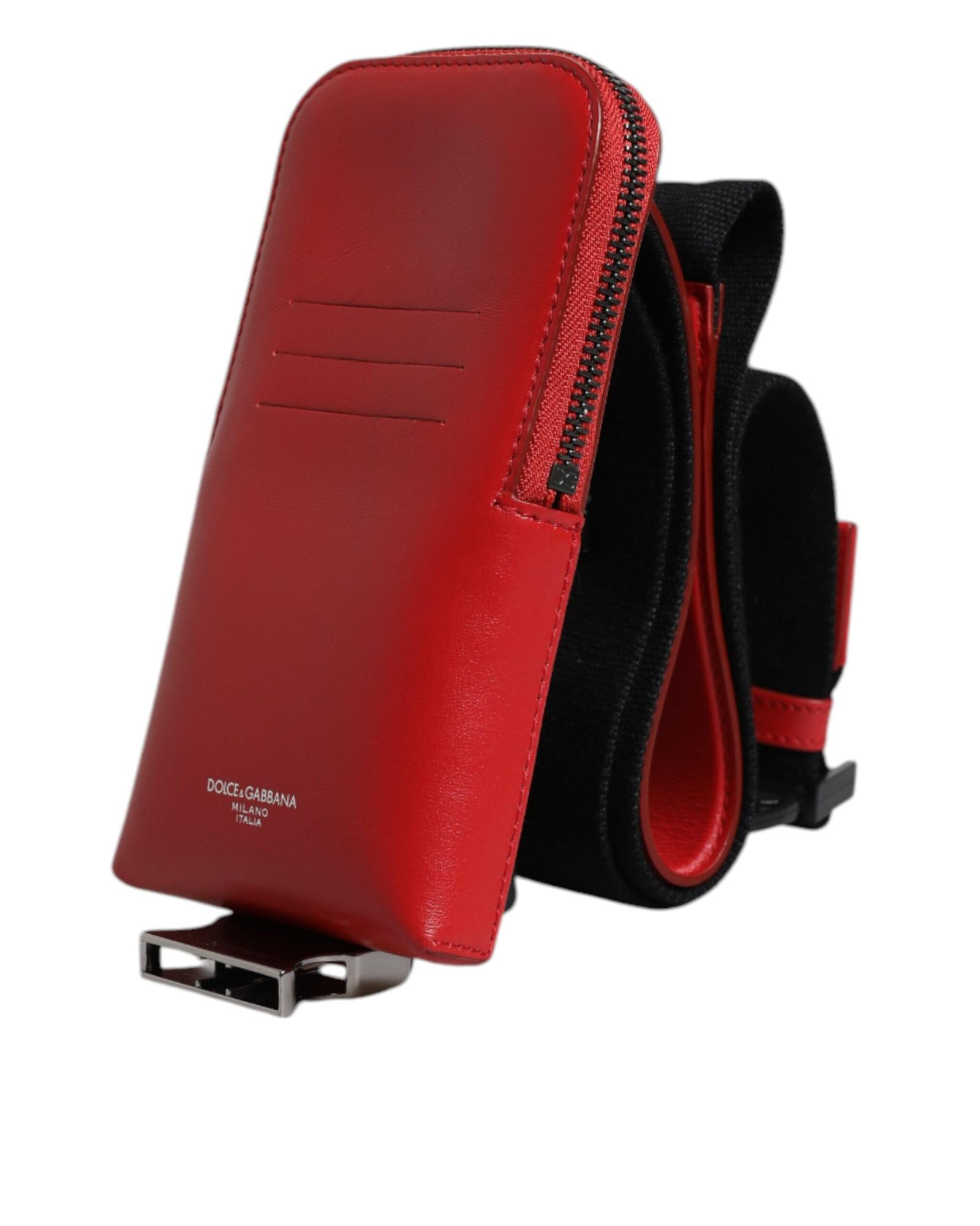 Dolce & Gabbana Men’s Red Leather Logo Zip Around Card Holder Wide Strap Wallet (Copy) – One Size