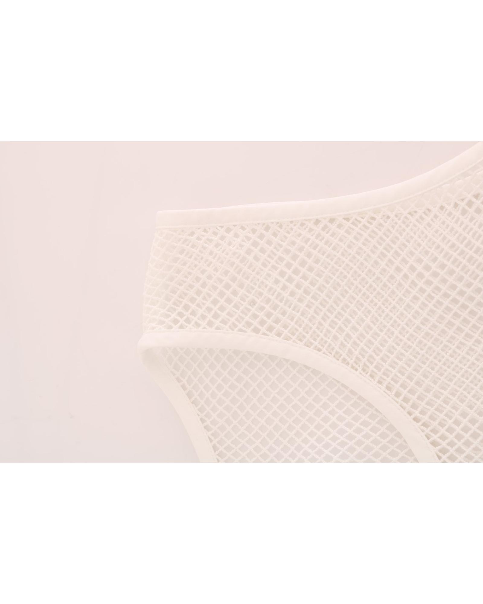 This is a stylish and elegant sleeveless tank top made from transparent net fabric, perfect for a fashionable and modern look. It features logo details and is crafted with a blend of high-quality materials, offering both comfort and style.