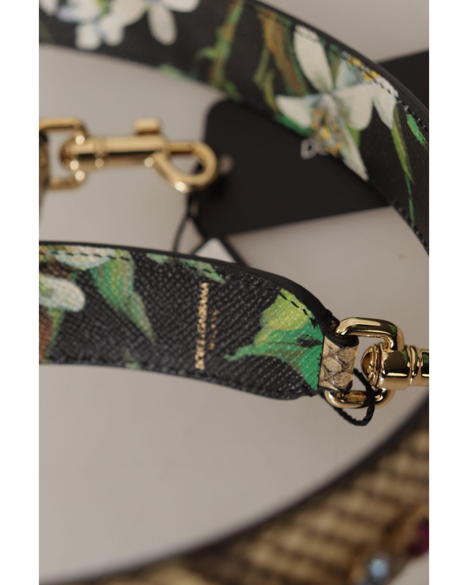 Dolce & Gabbana Women’s Beige Exotic Leather Crystals Reversible Shoulder Strap – One Size