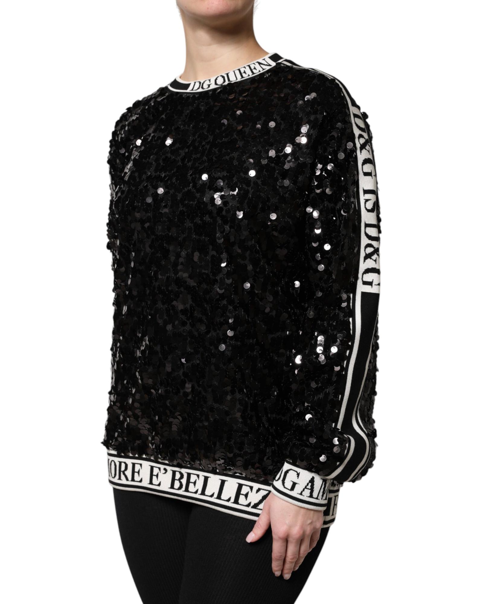 Dolce & Gabbana Women’s Black DG Queen Sequin Pullover Sweater – 36 IT