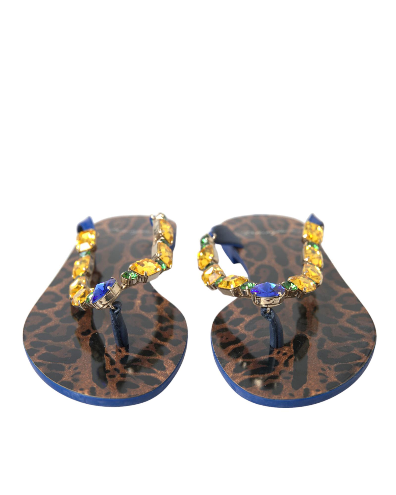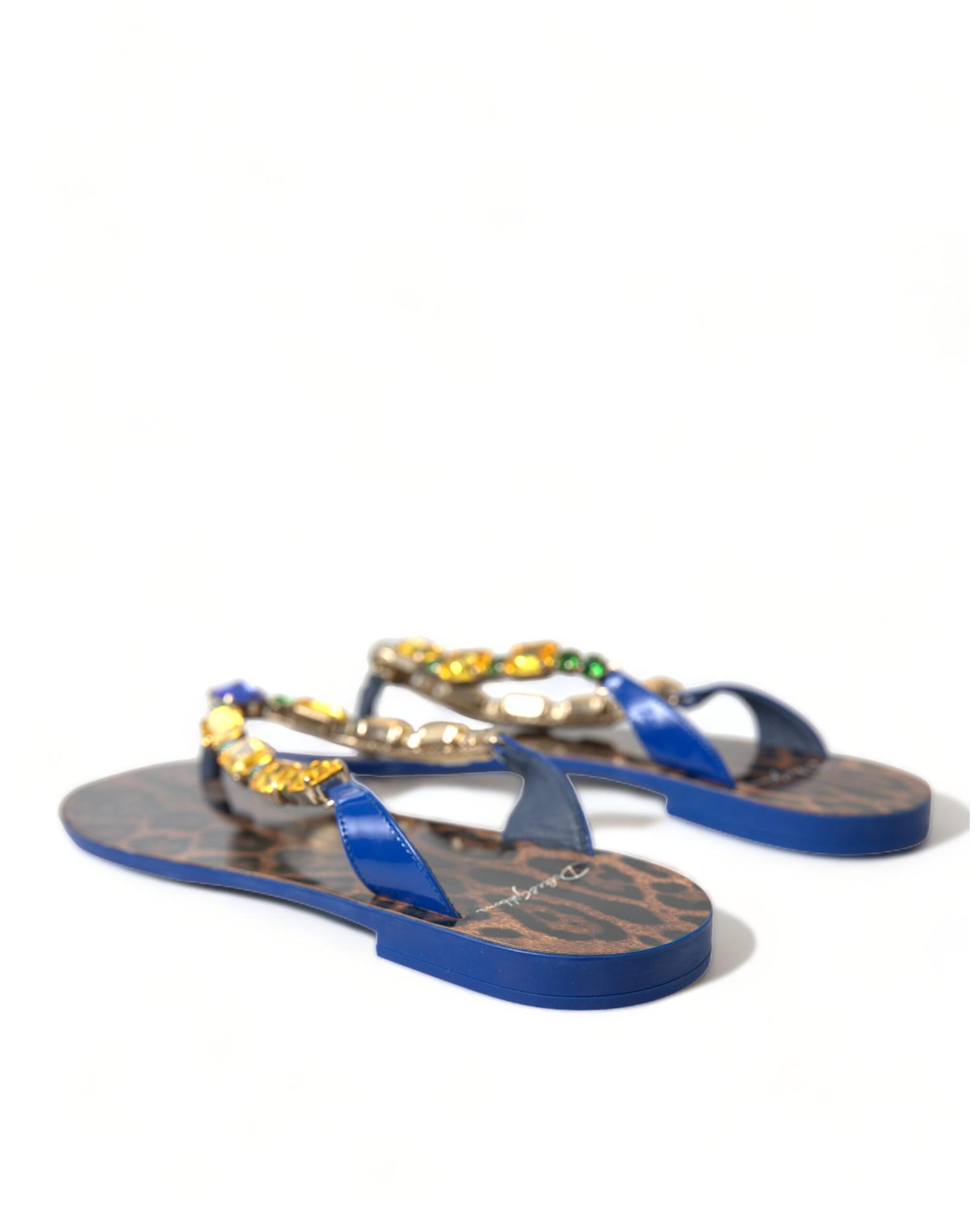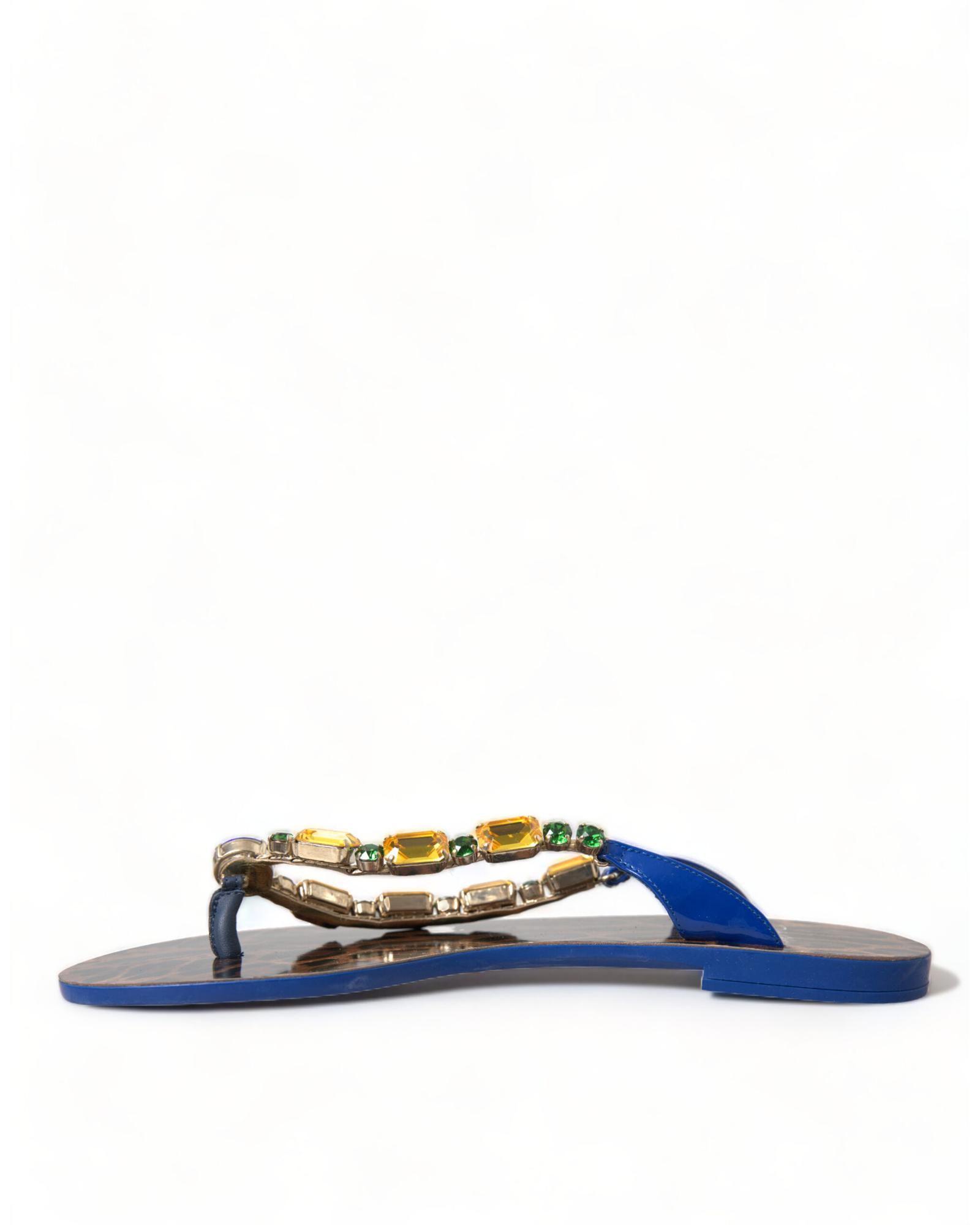 Dolce & Gabbana Women’s Elegant Blue Leather Flat Sandals – 35.5 EU