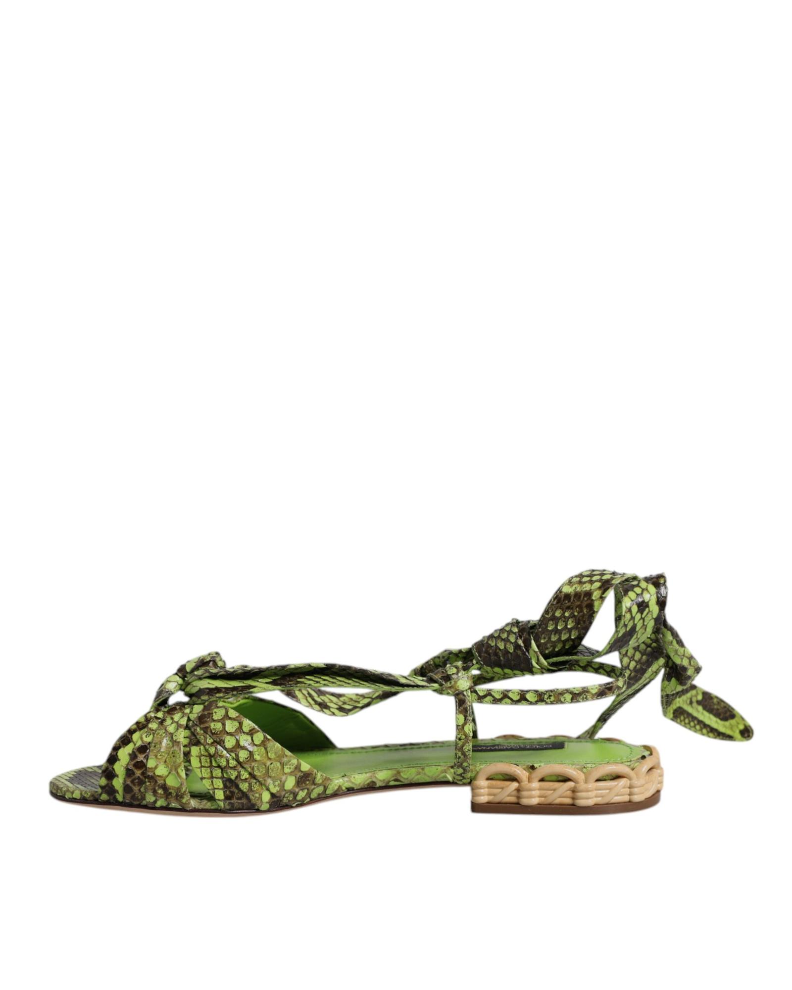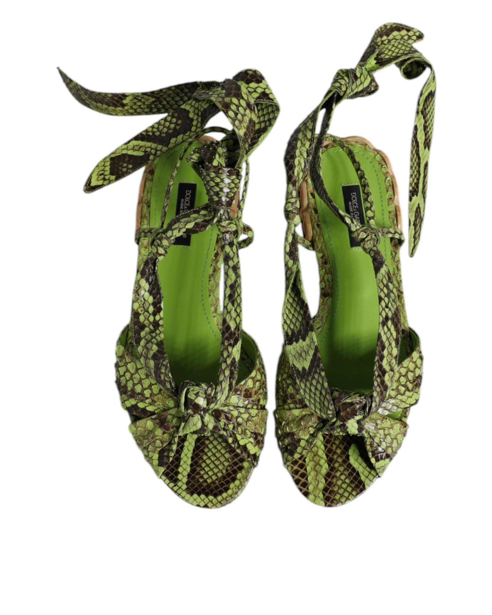 Dolce & Gabbana Women’s Green Animal Print Ankle Wrap Sandals Shoes – 37.5 EU