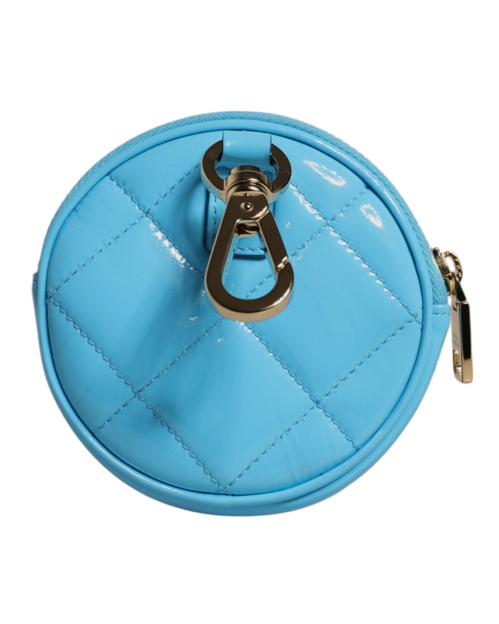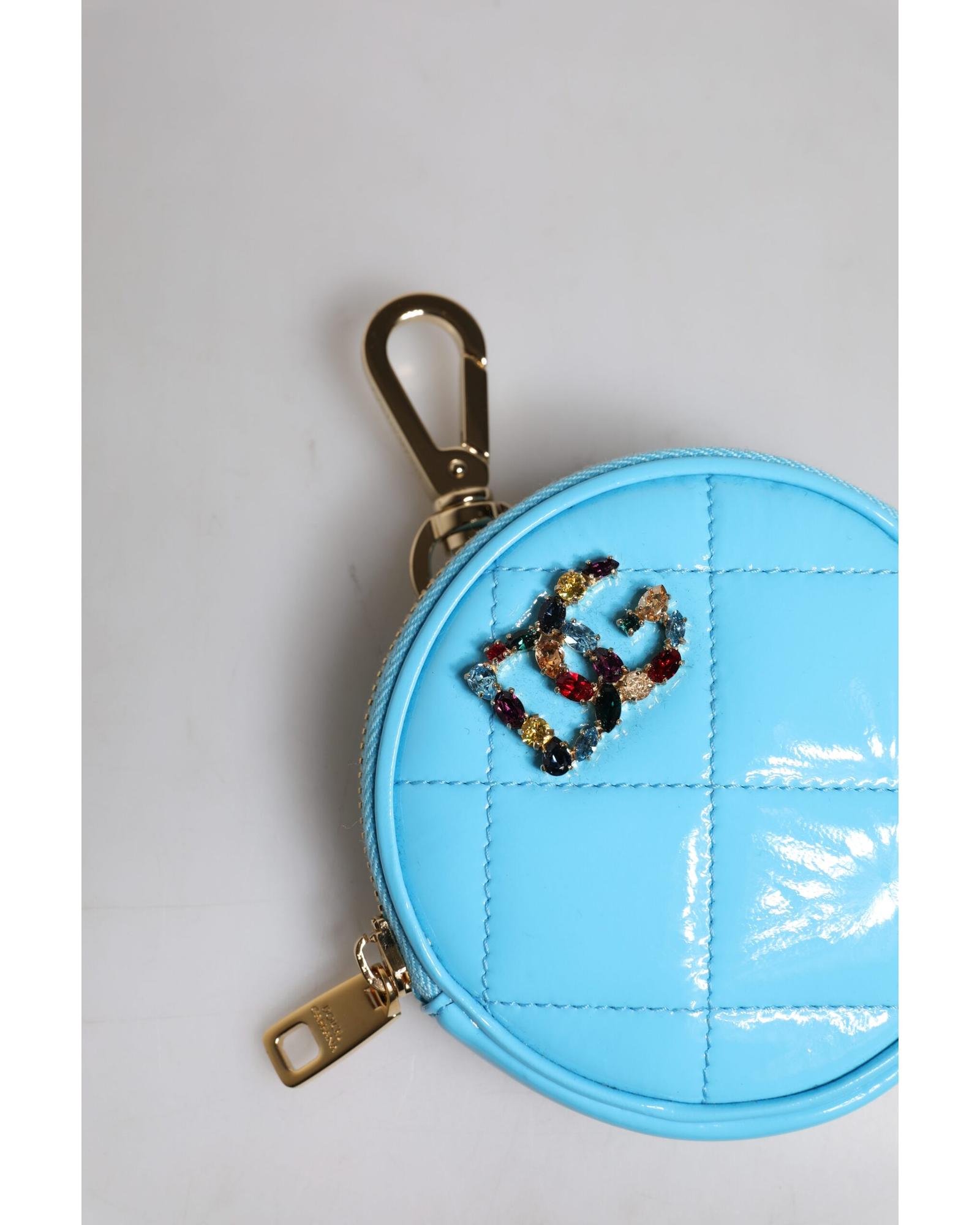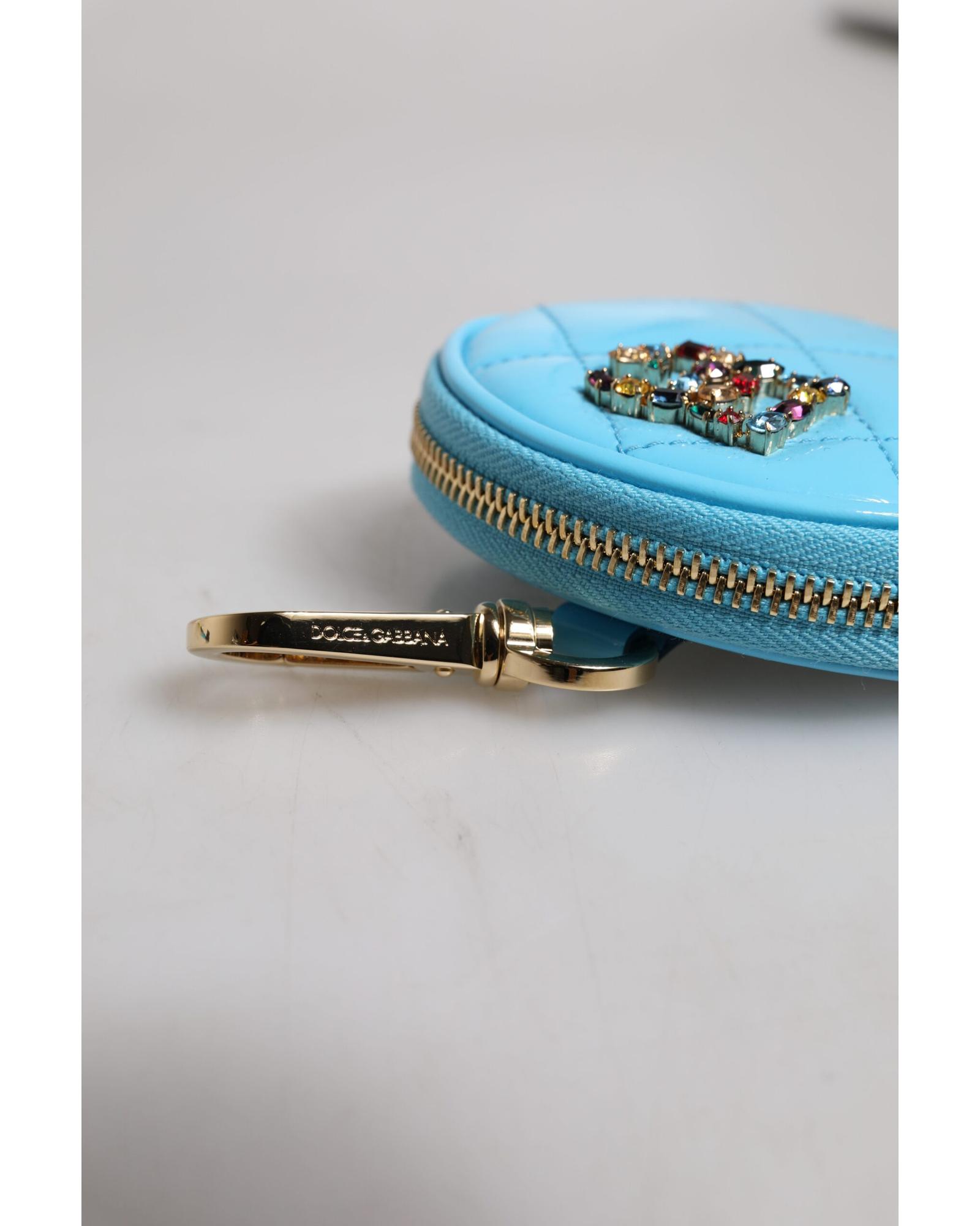 Dolce & Gabbana Women’s Light Blue Lamb Leather DG Crystal Round Coin Purse Wallet – One Size