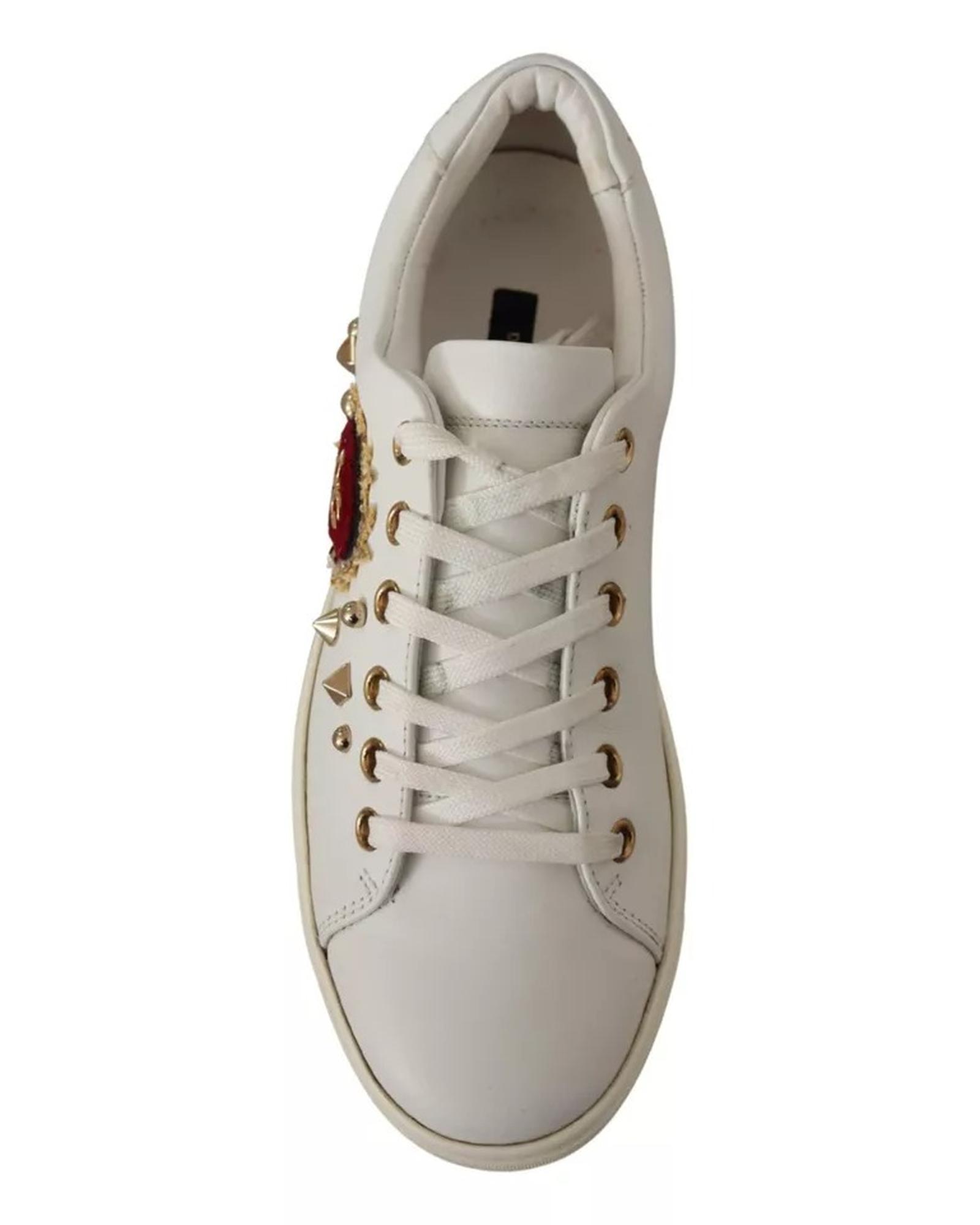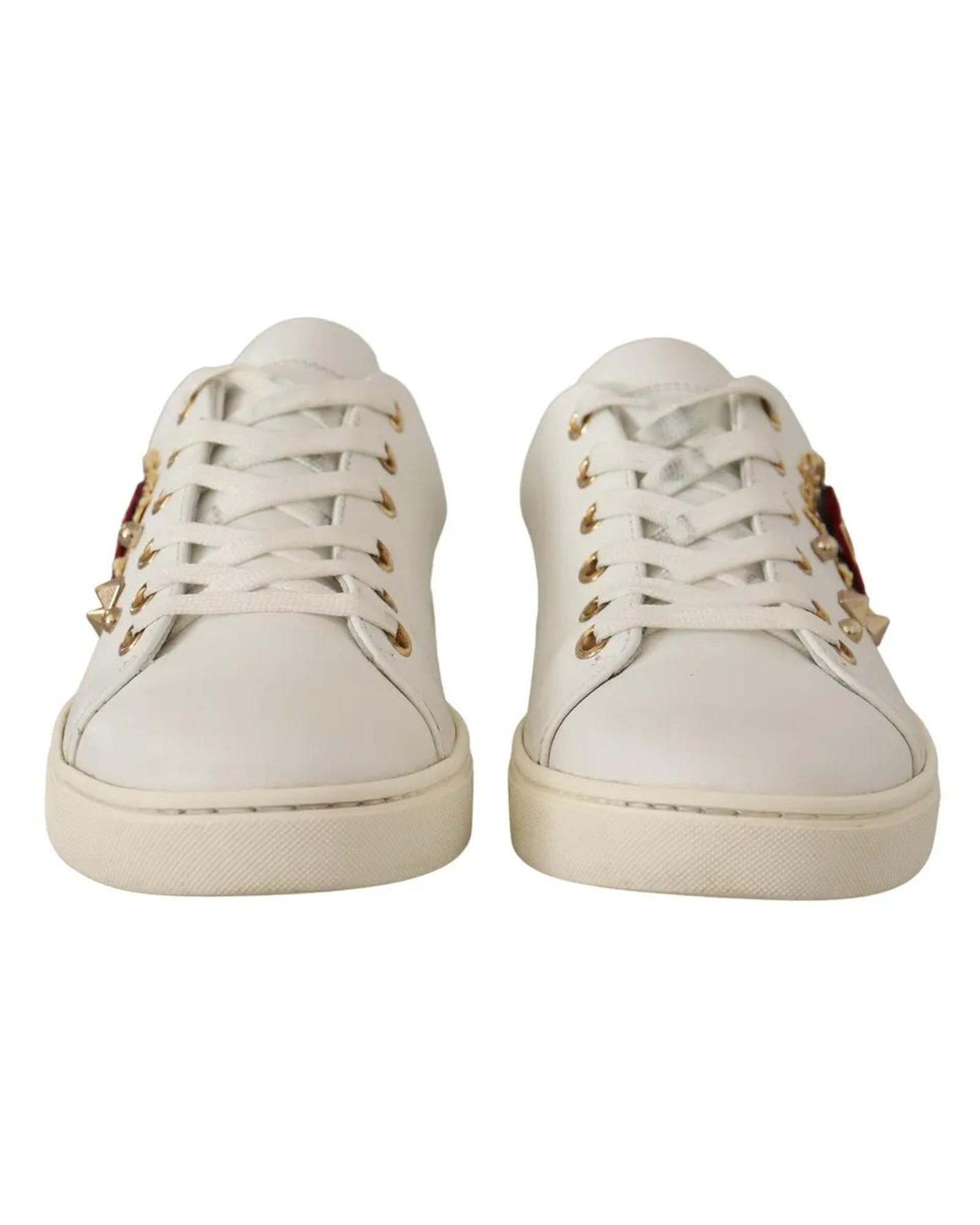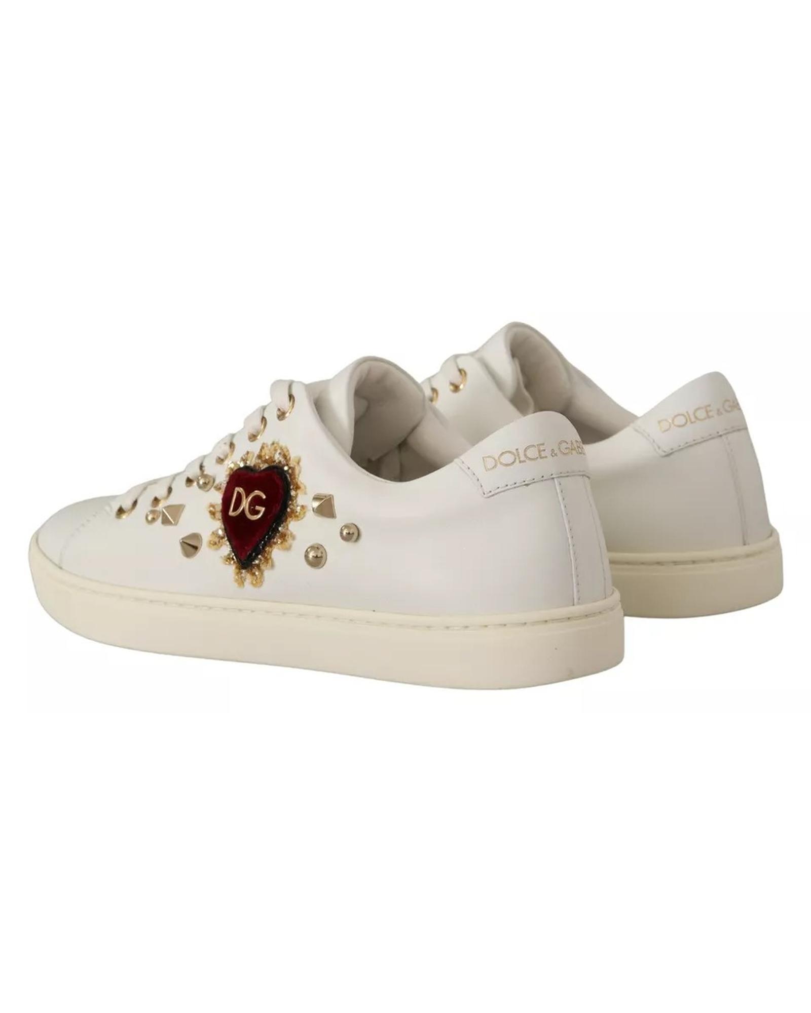 Dolce & Gabbana Women’s White Leather Gold Red Heart Sneakers Shoes – 36 EU