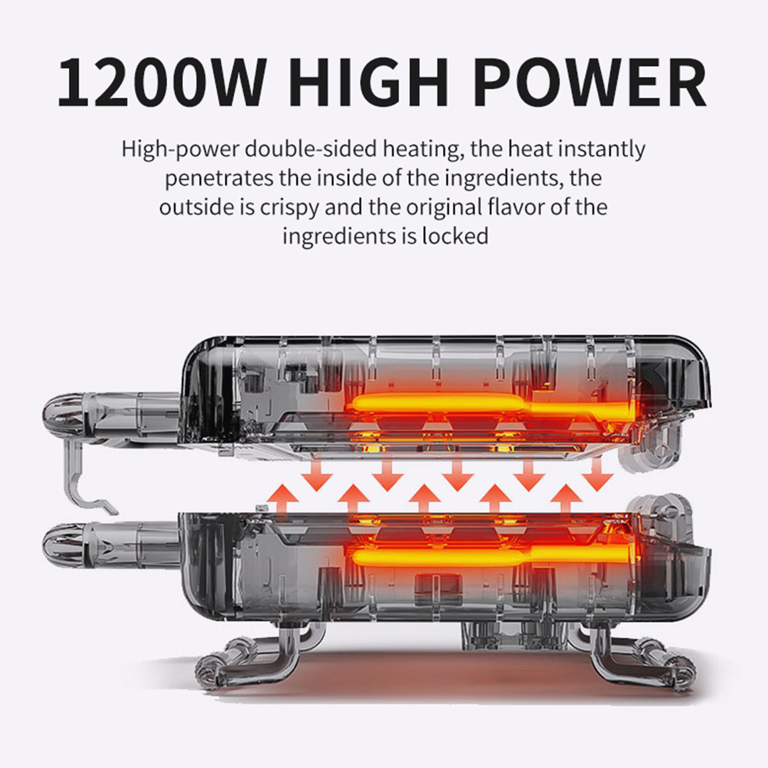 • Double-sided heating for uniform cooking