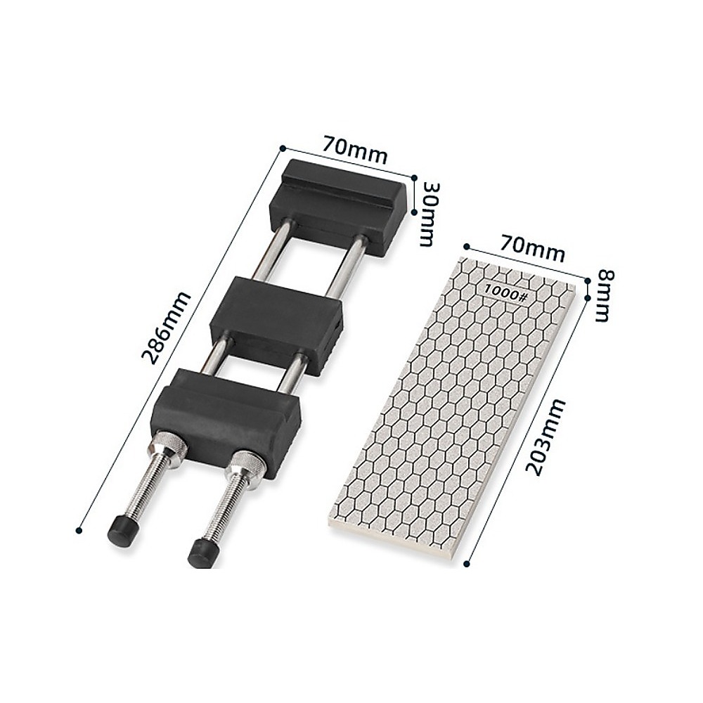• Two-sided sharpening with 400-grit and 1000-grit diamond surfaces