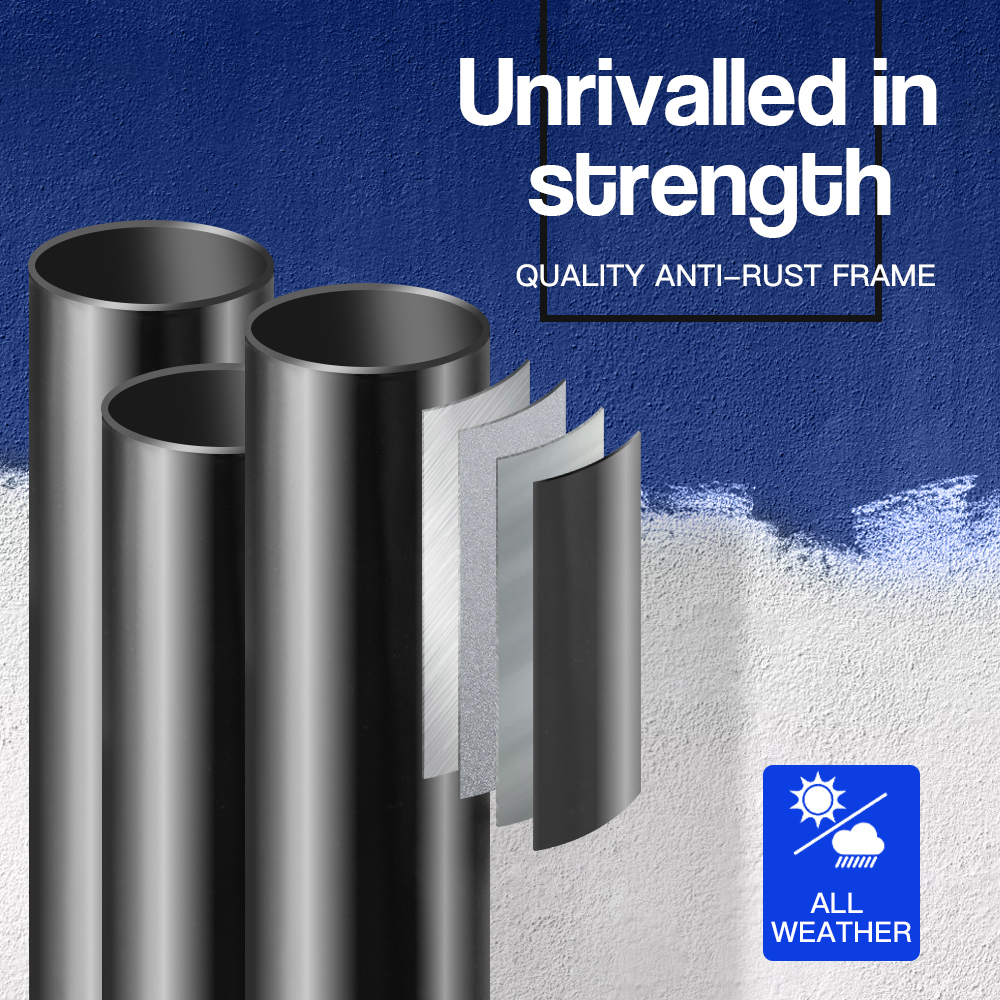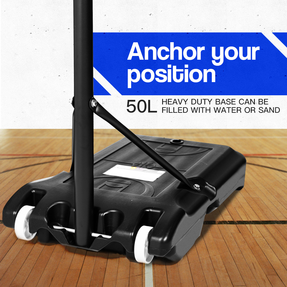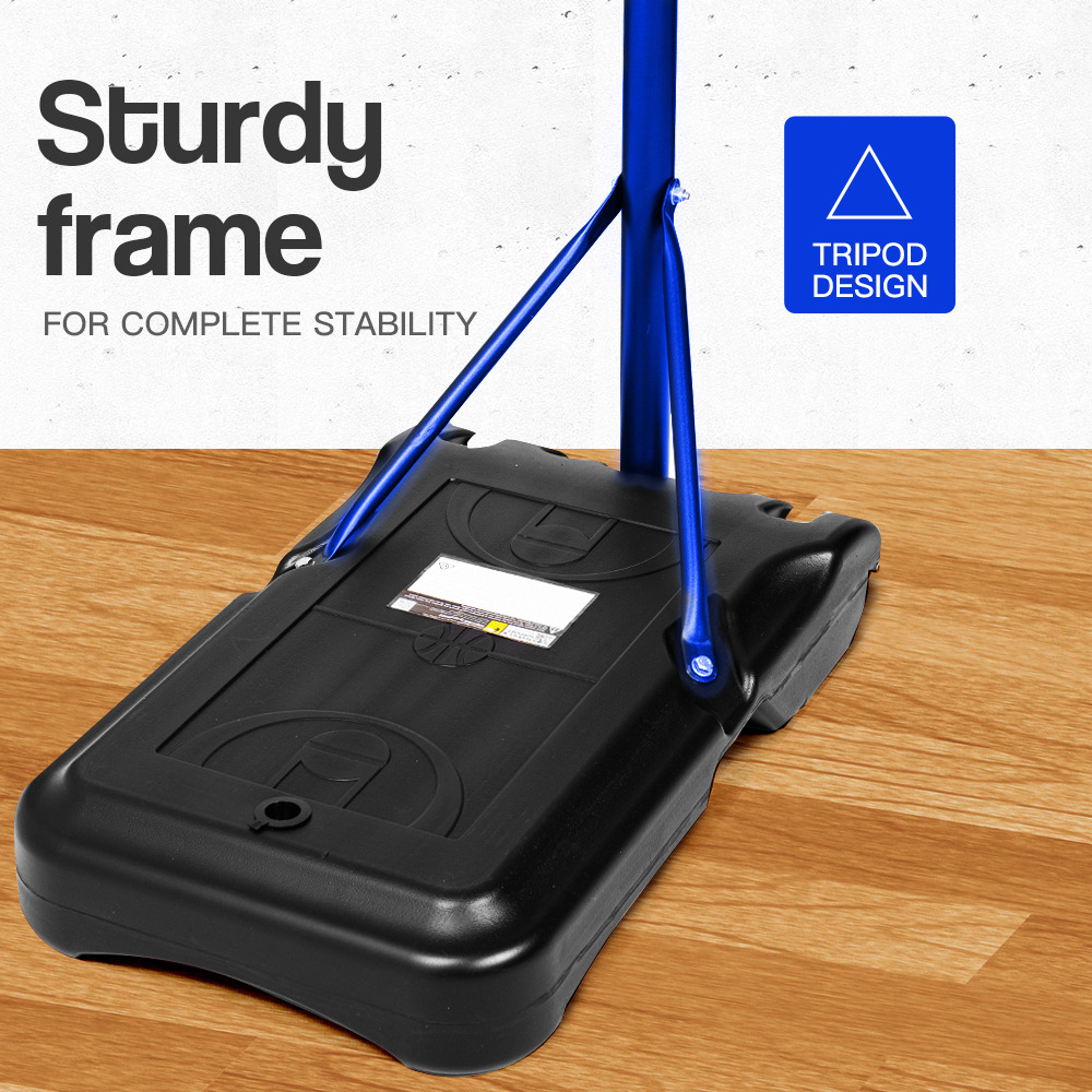 This portable basketball stand system is designed to inspire kids to develop their basketball skills and stay active. It features an adjustable rim height, a durable construction suitable for outdoor use, and a stable base for safe play.