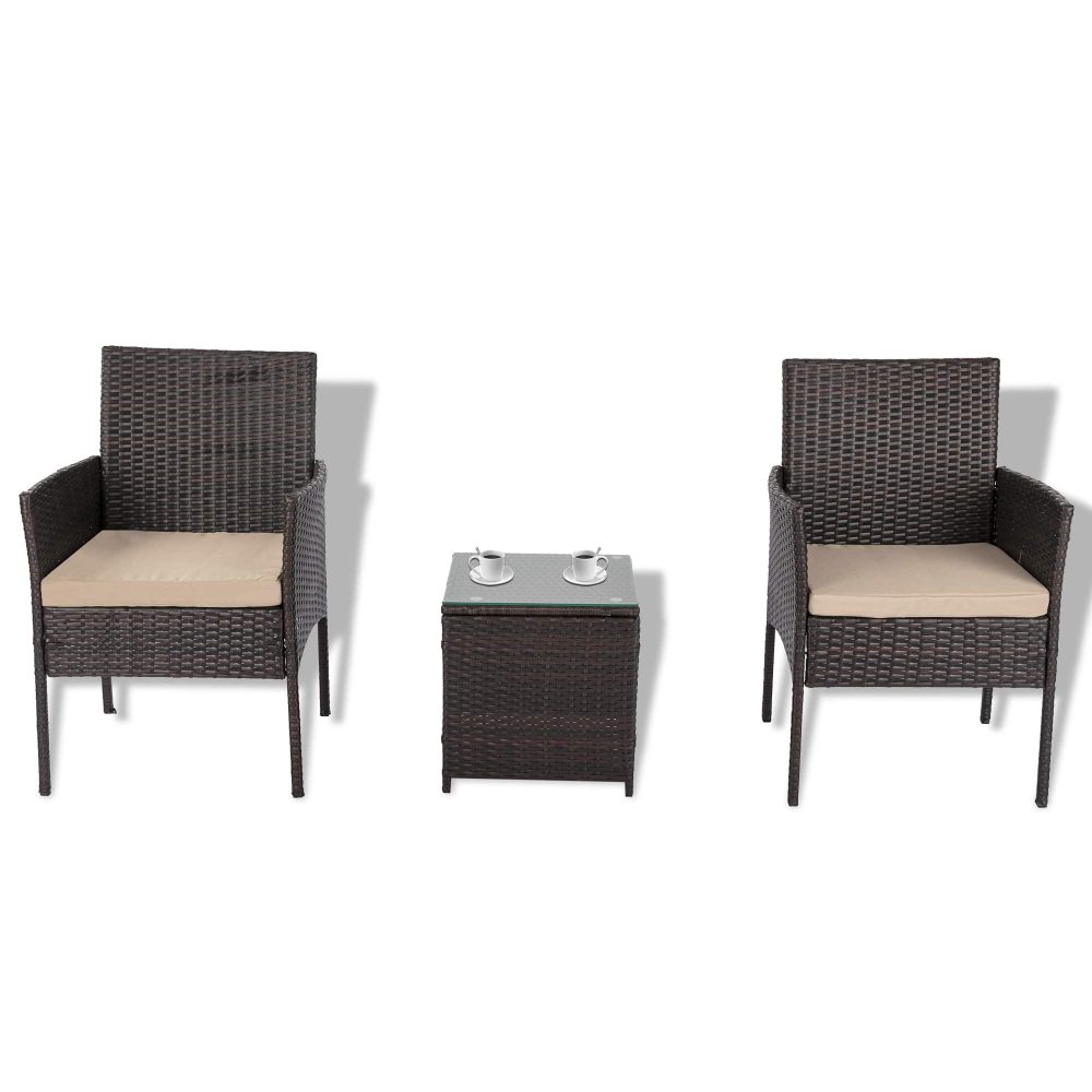 This outdoor bistro set includes two comfortable chairs and a stylish table, designed to add warmth and elegance to your garden, balcony, or courtyard. The set features smooth lines, neutral colors, and hand-woven wicker for a refined appearance and easy maintenance.