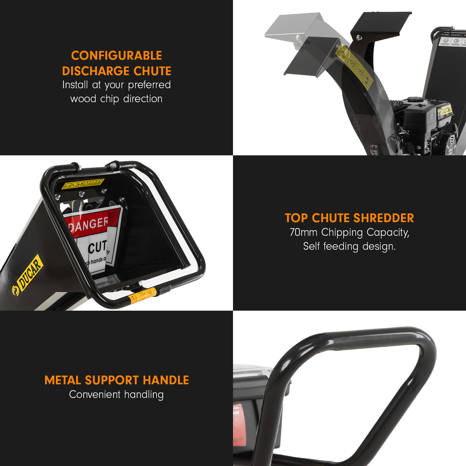 Ducar K70 7HP Wood Chipper Shredder Mulcher Grinder Petrol in Black