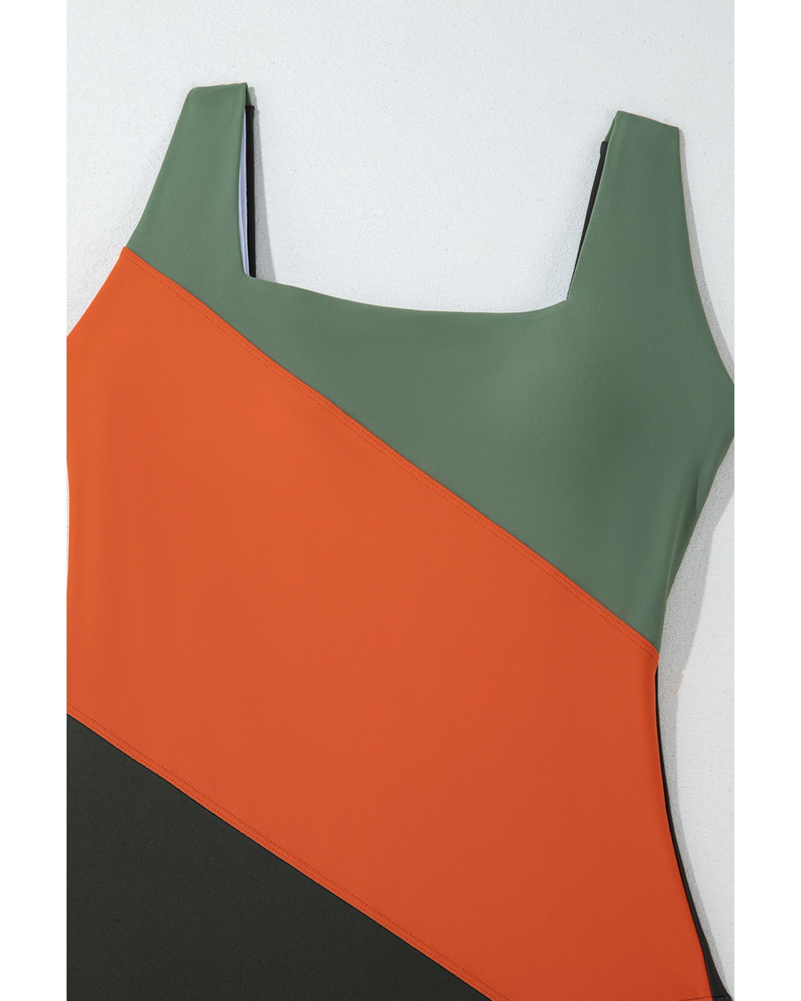 Duffel Green Color Block Padded Square Neck One Piece Swimsuit – M