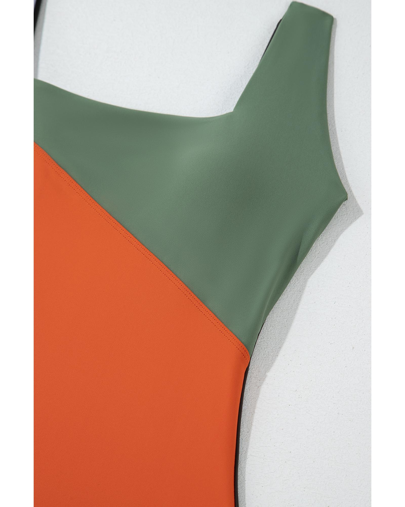 Duffel Green Color Block Padded Square Neck One Piece Swimsuit – XL