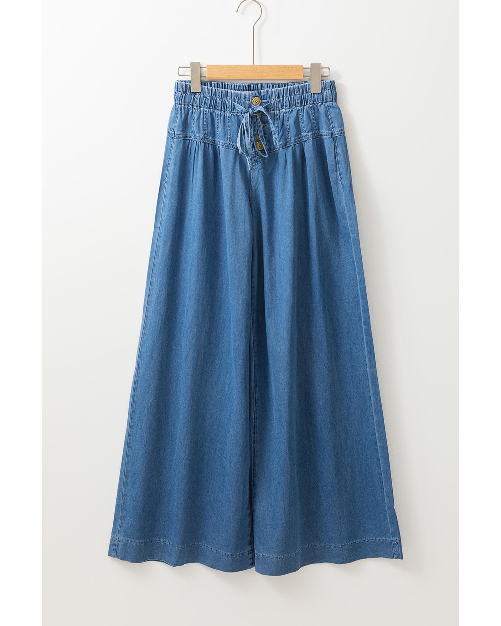 Package Content: One pair of Dusk Blue Mineral Wash Button Fly Waist Wide Leg Jeans
