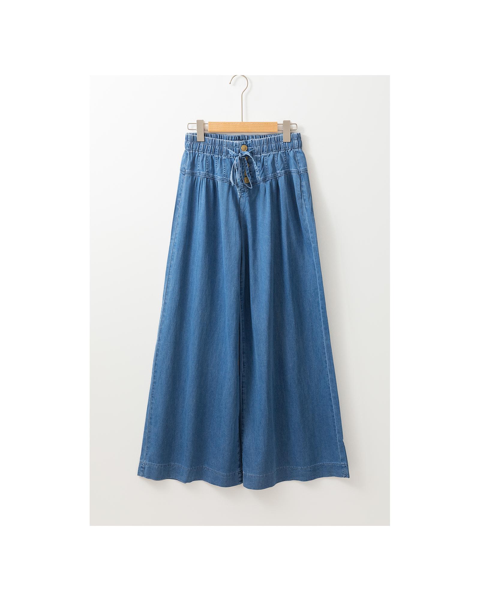 - One pair of Dusk Blue Mineral Wash Button Fly Waist Wide Leg Jeans