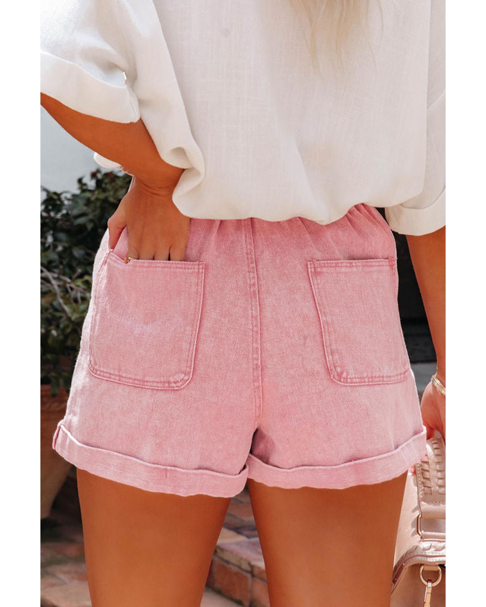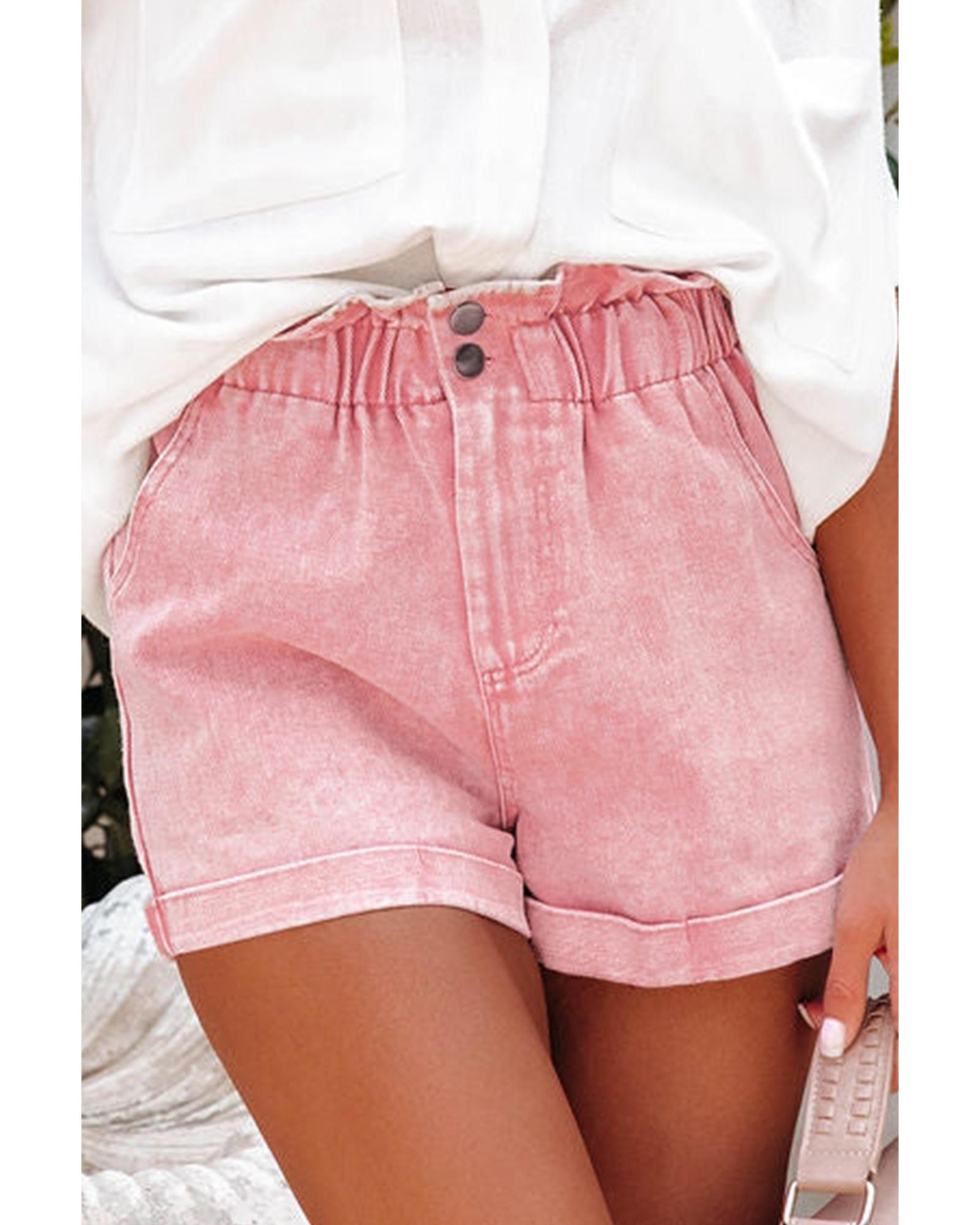 Dusty Pink Vintage Washed Frilled High Waist Denim Shorts – 12 US