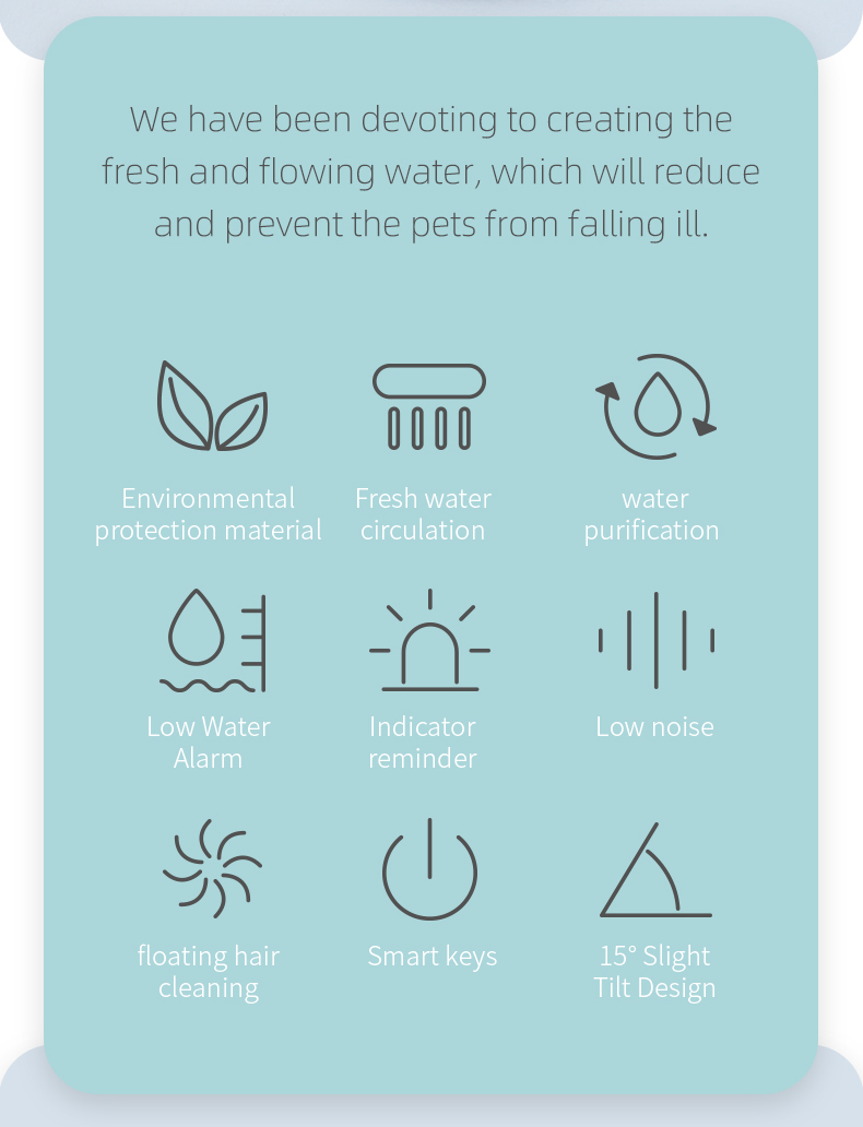 This automatic water fountain provides a continuous supply of fresh water for your pets. It features self-cleaning functions to maintain water cleanliness and freshness. The design operates quietly, ensuring it does not disturb your household environment.