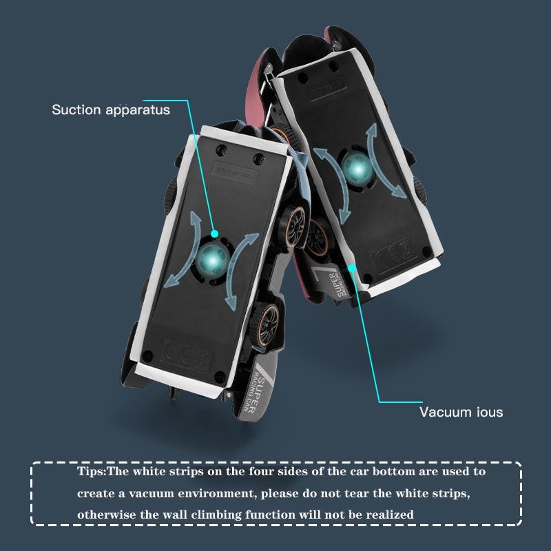 This electric remote control wall climbing car is designed for children to enjoy interactive play and develop their coordination skills. It features a vacuum base for strong suction on walls and glass surfaces, along with colorful LED lights for an engaging visual experience. The car offers simple operation suitable for young children and provides an entertaining way to stimulate intellectual development and hand-eye coordination.