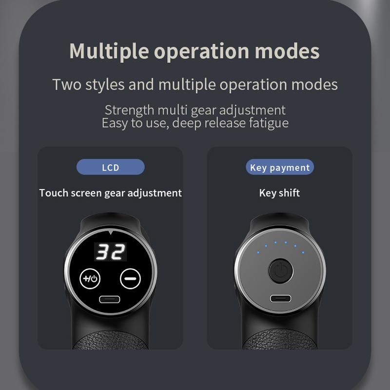 This electric massage gun features a triangular design with an LCD display, providing a powerful and stable massage experience. Its streamlined shape offers a comfortable grip, making it suitable for deep muscle targeting with a 10mm amplitude.