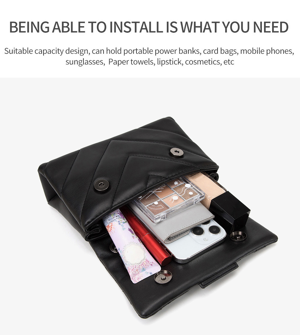 - Designed to hold daily essentials such as phone, wallet, cosmetics, and sunglasses