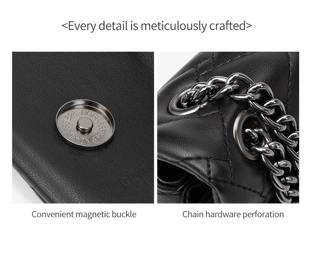 • Durable chain strap allows for crossbody or shoulder wear