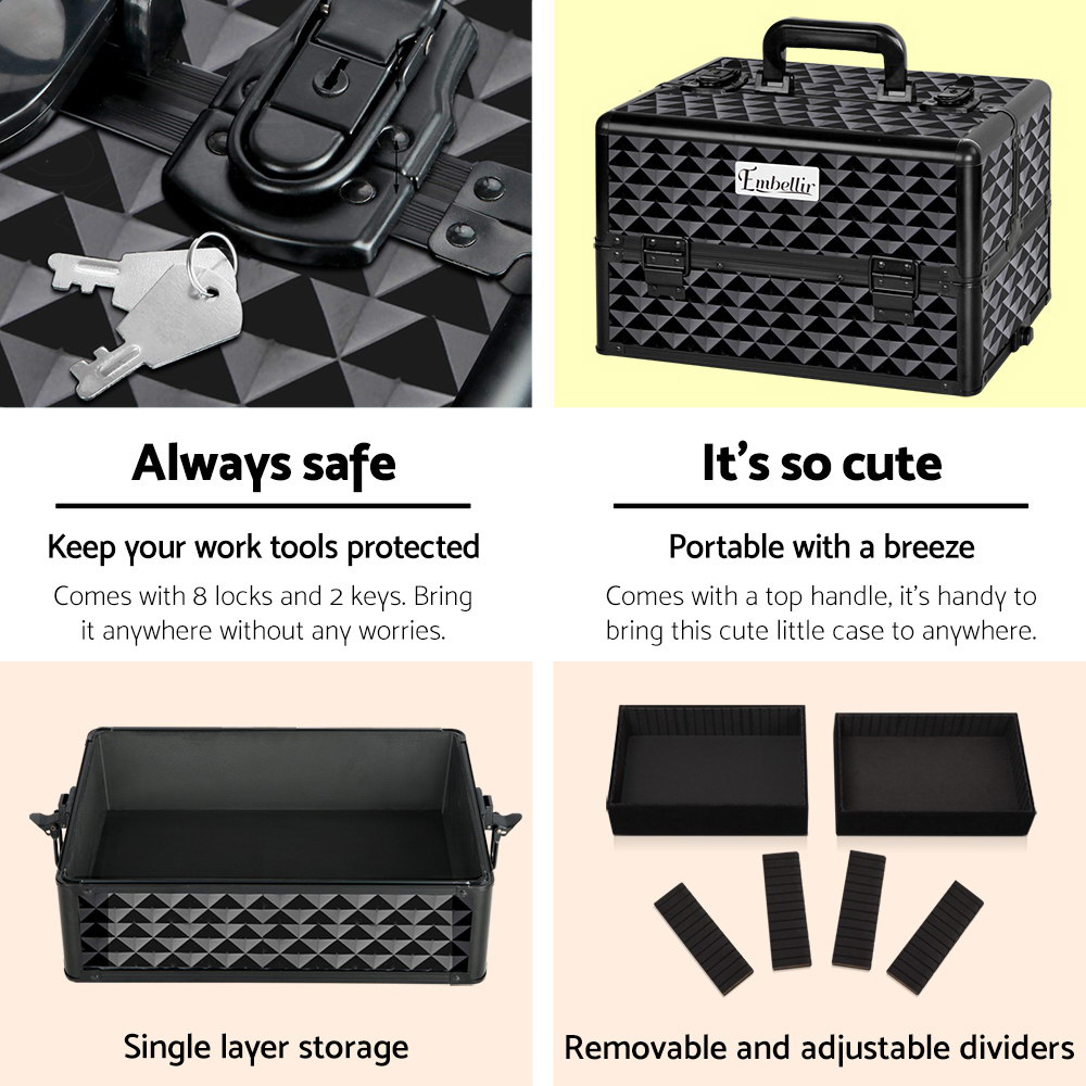 Embellir Makeup Case Beauty Trolley Cosmetic Organiser Box Travel Wheels Diamond