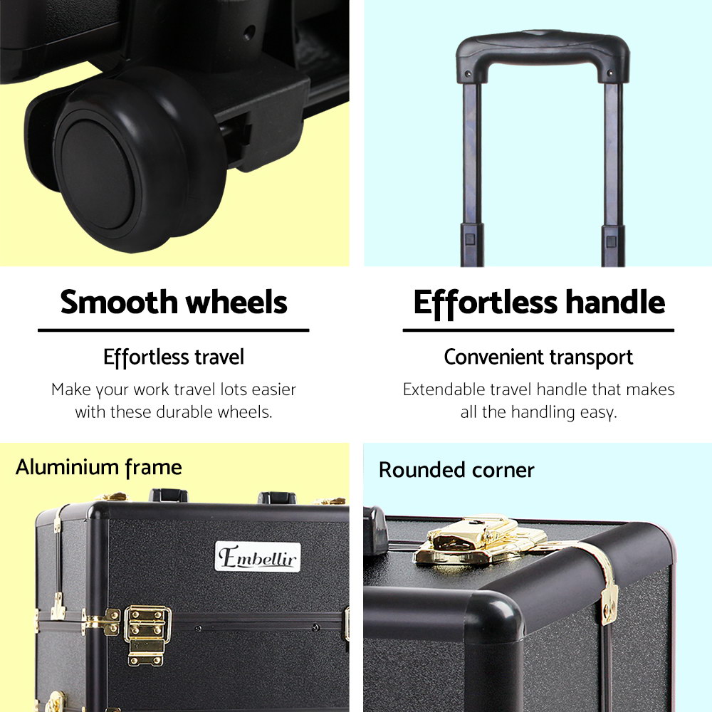 Embellir Makeup Case Beauty Trolley Cosmetic Organiser Box Travel Wheels Gold