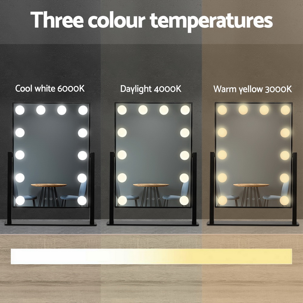 Embellir Makeup Mirror 30x48cm Hollywood Vanity with LED Light Rotation Tabletop