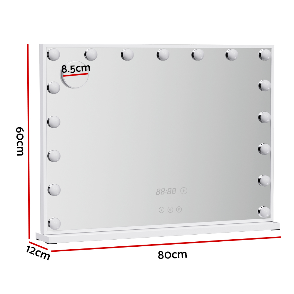 Embellir Makeup Mirror 80x60cm Hollywood Vanity with LED Light Tabletop White