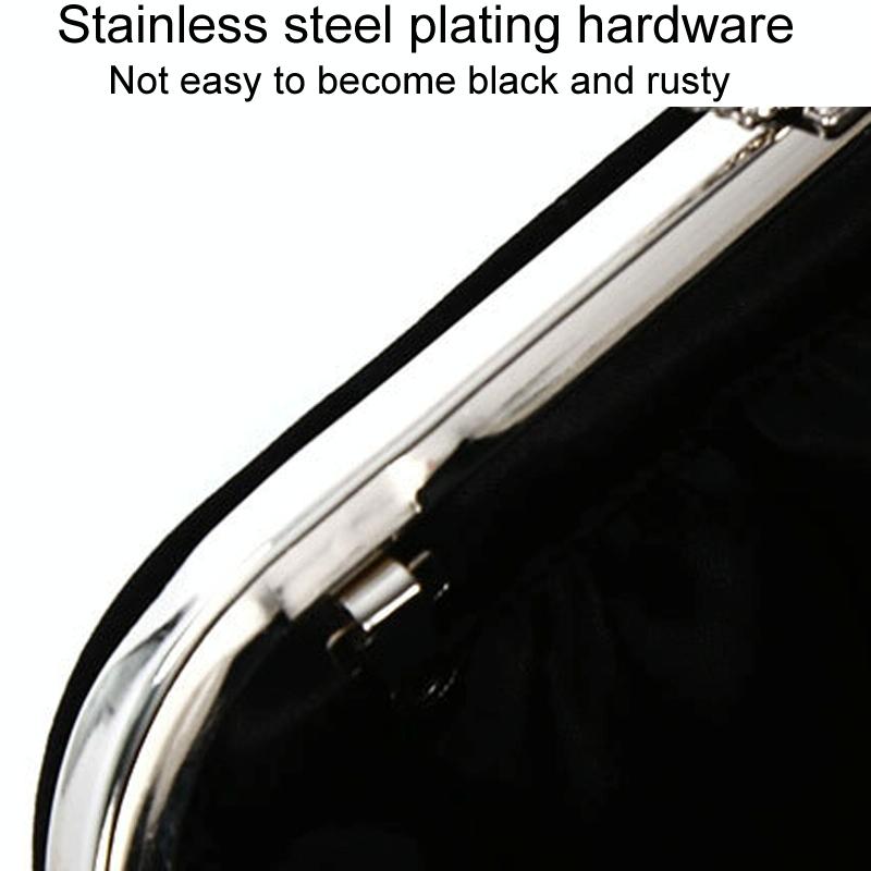 This embellished U-shaped evening clutch is designed for ladies, perfect for banquets and parties. Crafted from velvet, it combines elegance with practicality, featuring a large opening for storing coins, cash, and cards. The clutch includes a detachable chain for versatile carrying options and is finished with durable stainless steel plating hardware, adding charm to your overall look.