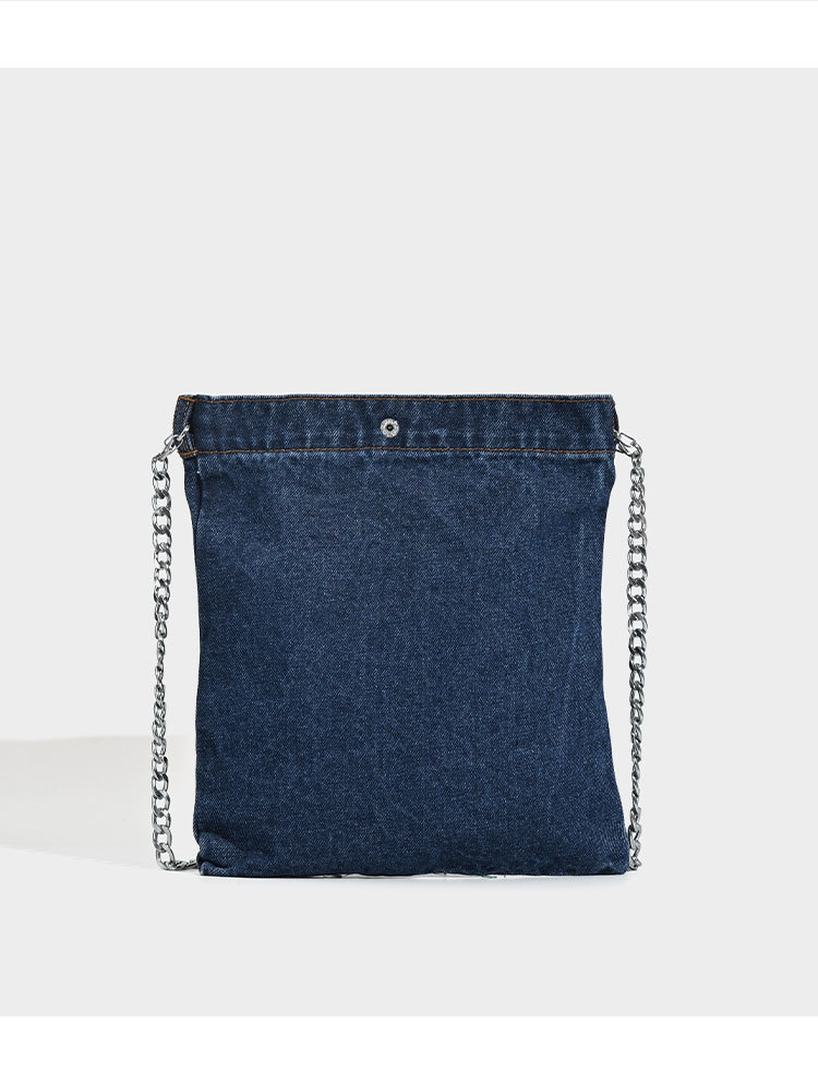 This embroidered floral denim crossbody bag features intricate embroidery of wildflowers and butterflies, combining vibrant colors with a casual denim base. The chain strap adds a modern touch, making it suitable for everyday use and various casual occasions.