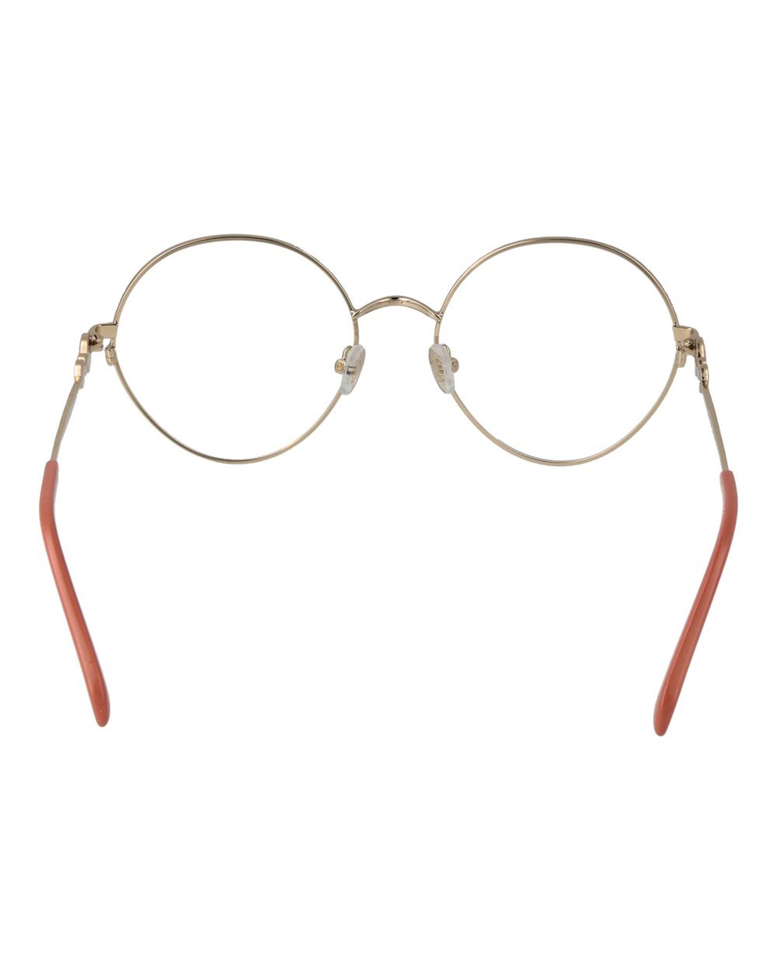 This pair of women’s optical frames features a stylish round design with a full rim style, offering a classic and versatile look. Crafted from durable metal with a gold finish, these frames are both lightweight and elegant. The lenses are demo glasses made of plastic, suitable for fitting with prescription lenses. Designed for comfort and style, they are a perfect accessory for everyday wear.