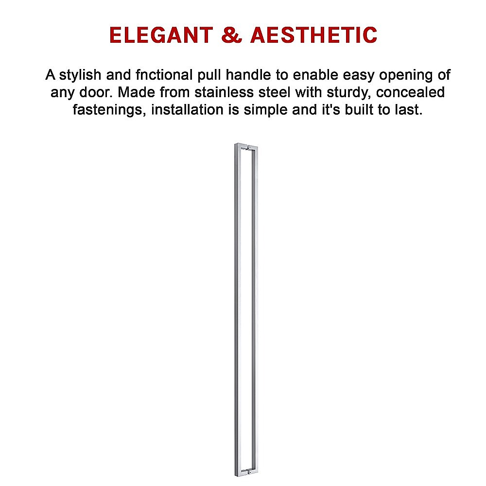 This brushed satin entrance door pull handle offers a modern and sleek appearance, suitable for both commercial and residential doors. Crafted from durable stainless steel, it provides a stylish and functional solution for easy door operation. The handle features a minimalist design with clean lines and smooth surfaces, enhancing the contemporary aesthetic of any space. Easy to install with included screws and matching caps, it is designed to fit doors with thicknesses between 5mm and 50mm.