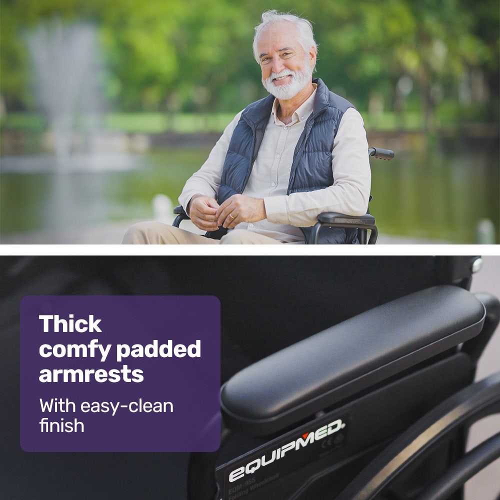 EQUIPMED 24 Inch Folding Wheelchair with Park Brakes, 136kg Capacity, 51cm Wide Seat, Black