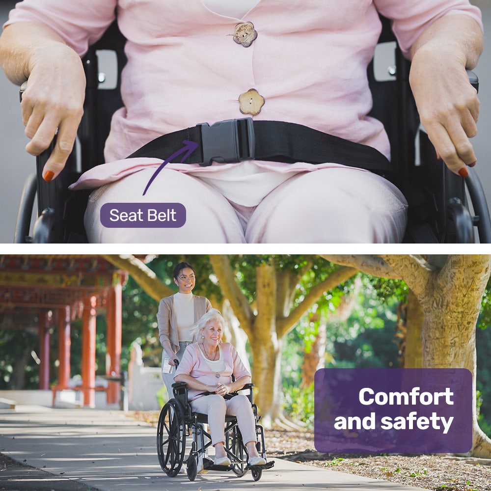 This folding wheelchair combines practicality, reliability, and comfort to provide users with mobility and confidence. It features a sturdy powder-coated steel frame capable of supporting up to 136kg, along with adjustable and swing-away footrests for easy access. The wheelchair is designed for convenience with quick folding action and ergonomic handles, making it suitable for both users and helpers during outings.