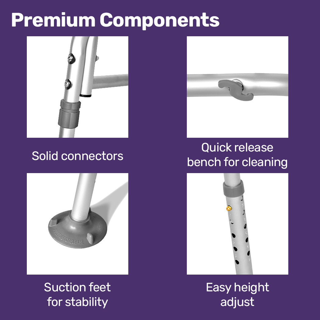 This bath transfer bench provides a safe and comfortable seating solution for seniors and individuals with mobility challenges. Its lightweight, ergonomic design ensures ease of use and stability during bathing routines, making daily personal care more manageable.
