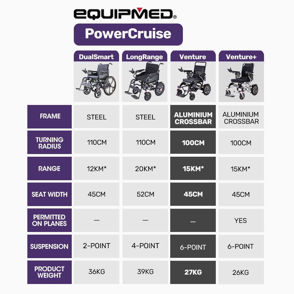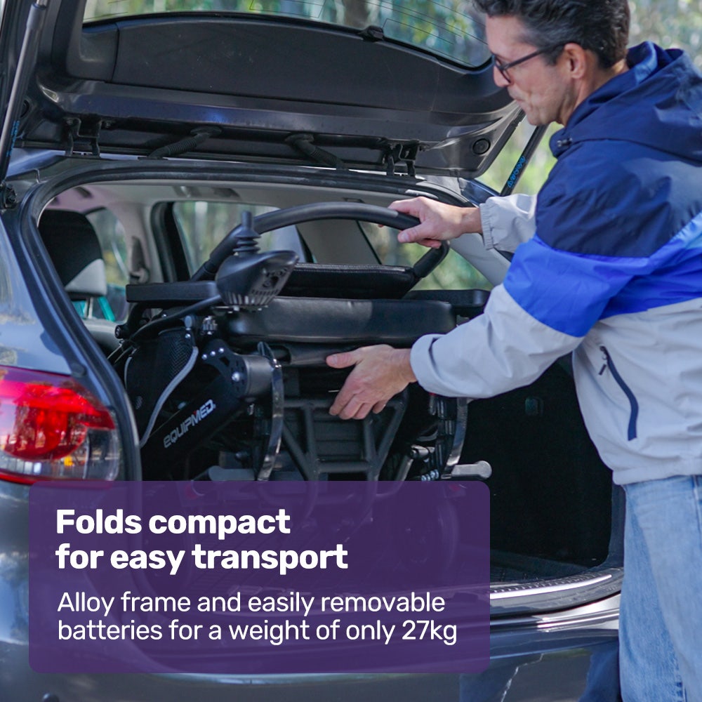 EQUIPMED Electric Folding Wheelchair, Long Range, Airline Approved, Aluminium Frame, Lithium Battery, Black