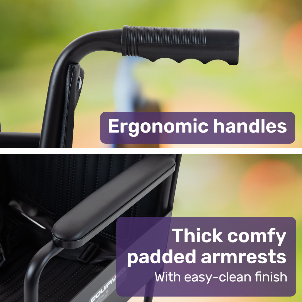 EQUIPMED Folding Transit Manual Wheelchair, Attendant Propelled, Steel Frame, Wide Seat, Comfortable for S-XL, 114kg Capacity, Park Brakes, Transport