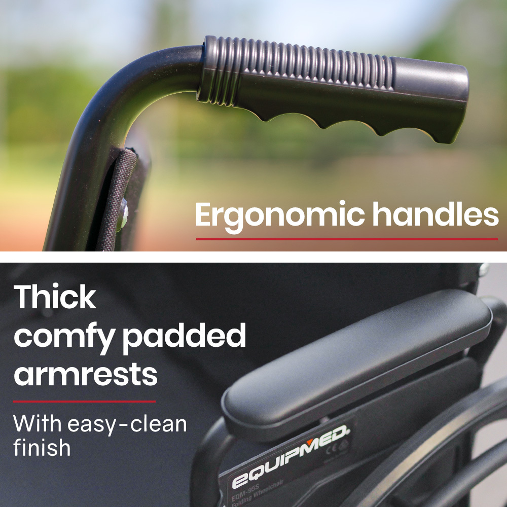 EQUIPMED Portable Folding Wheelchair 24 Inch 136kg Capacity Wheel Chair Retractable Armrests, Black